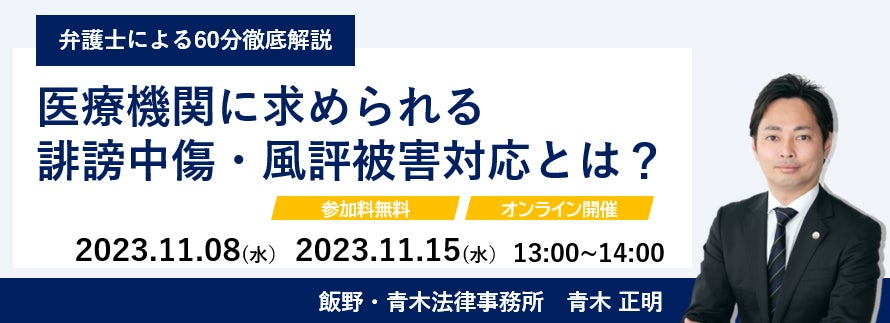 また、サービス開始にあたり、主に医療機関を対象とした誹謗中傷対策セミナーを開催いたします。