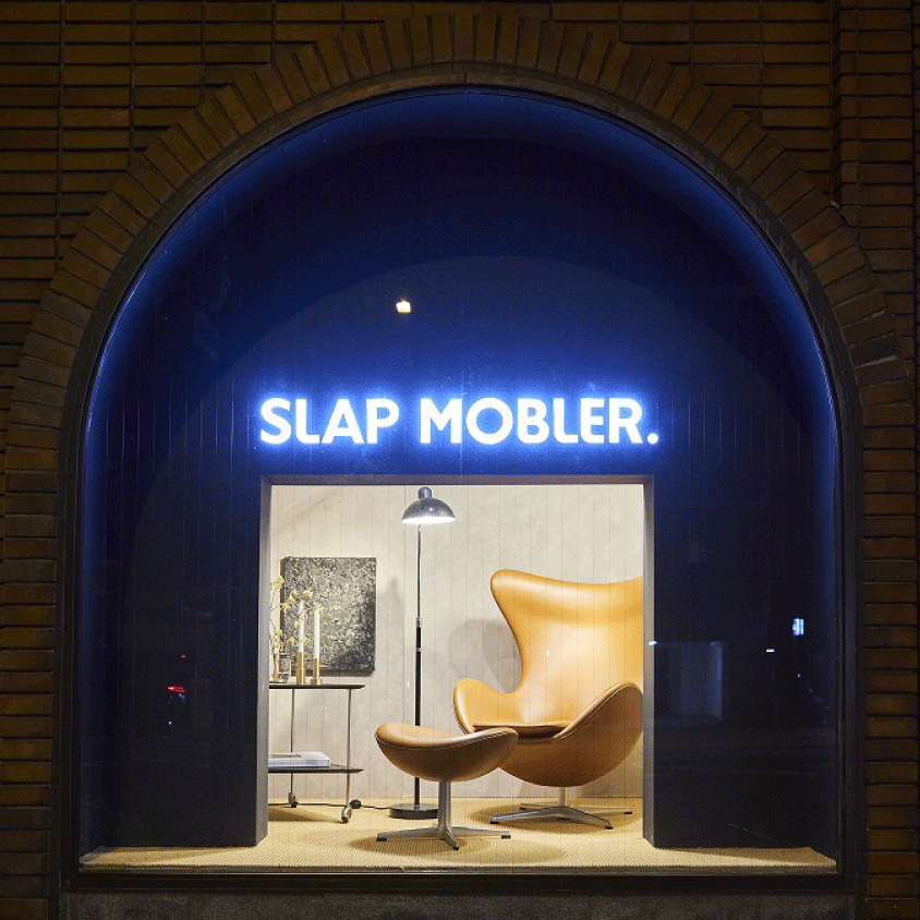 今回の企画に連動し、インテリアショップ〈スラップモブラー〉のウィンドウをフリッツ・ハンセンのアイテムがジャックします。アイコニックなフリッツ・ハンセンのプロダクトでしつらえたスタイリングをお楽しみください。