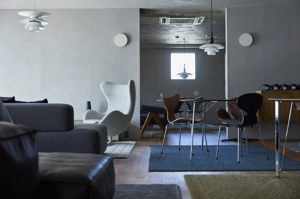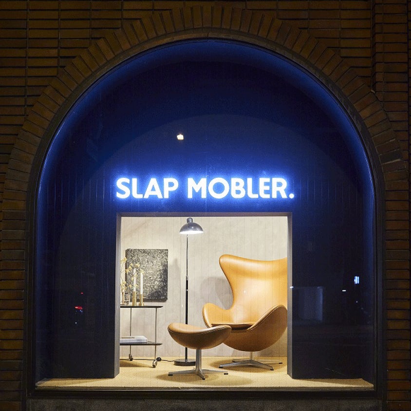 21番地の2階に店舗を構える予約制のインテリアショップ スラップモブラー。インテリアを広い視点で捉え、空間全体をゼロからコーディネートしたり、あるものを生かしながらリノベーションしたりすることで、一人ひとりの豊かな暮らしを提案しています。スラップモブラーでは北欧をはじめヨーロッパを中心にしたブランドの家具や照明、カーテン、インテリア雑貨を取り扱っています。「FRITZ HANSEN CAFÉ」で使用している家具や雑貨などのアイテムはすべてスラップモブラーでお買い求めいただけます。