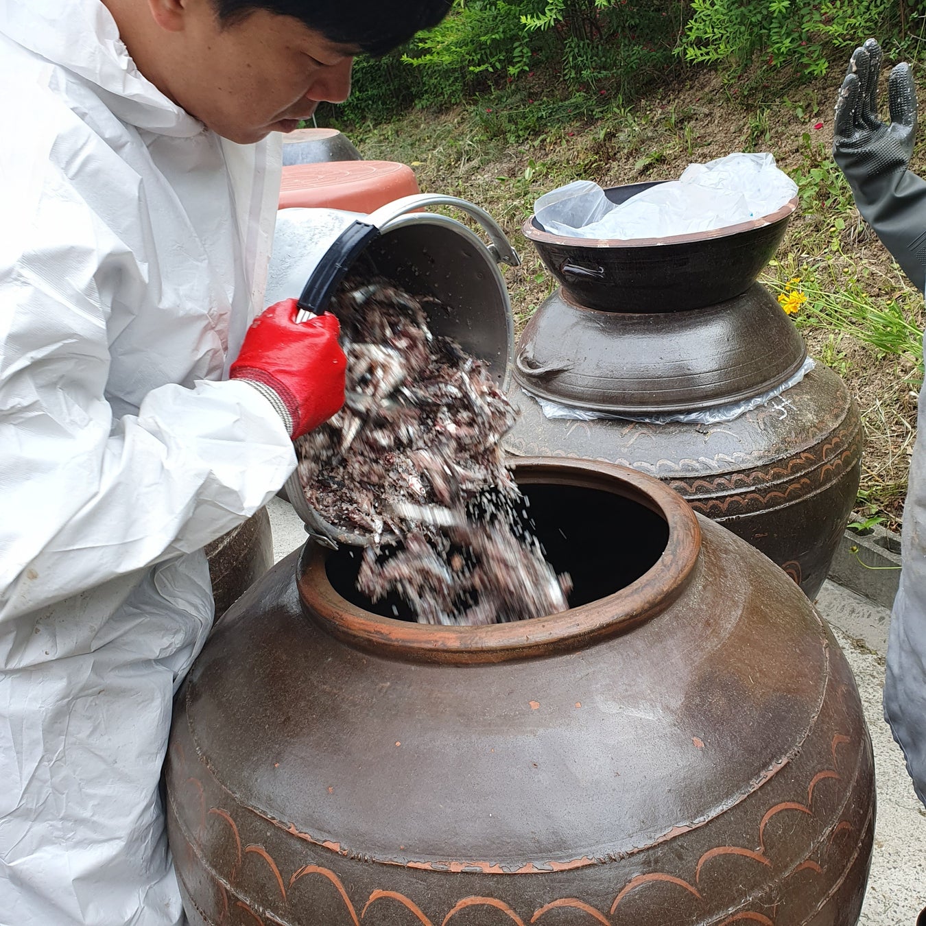 今回発売する王信魚醬は、韓国の伝統的な発酵技術である「チャンドク台」と「メジュ」の発酵方式で作られます。発酵促進剤や施設を使わず、自然そのままの重力だけで2年間、アンチョビのエキスを抽出します。