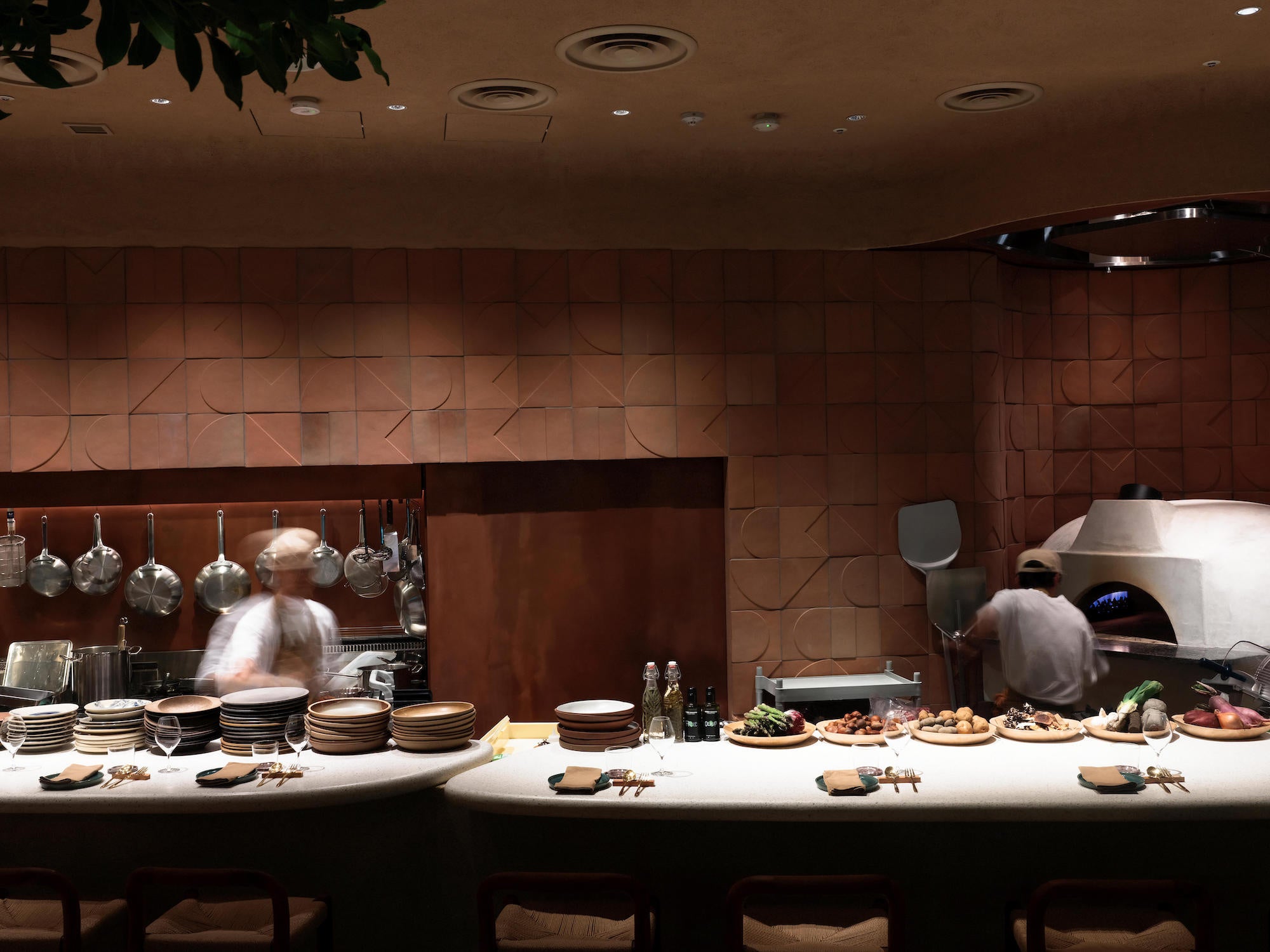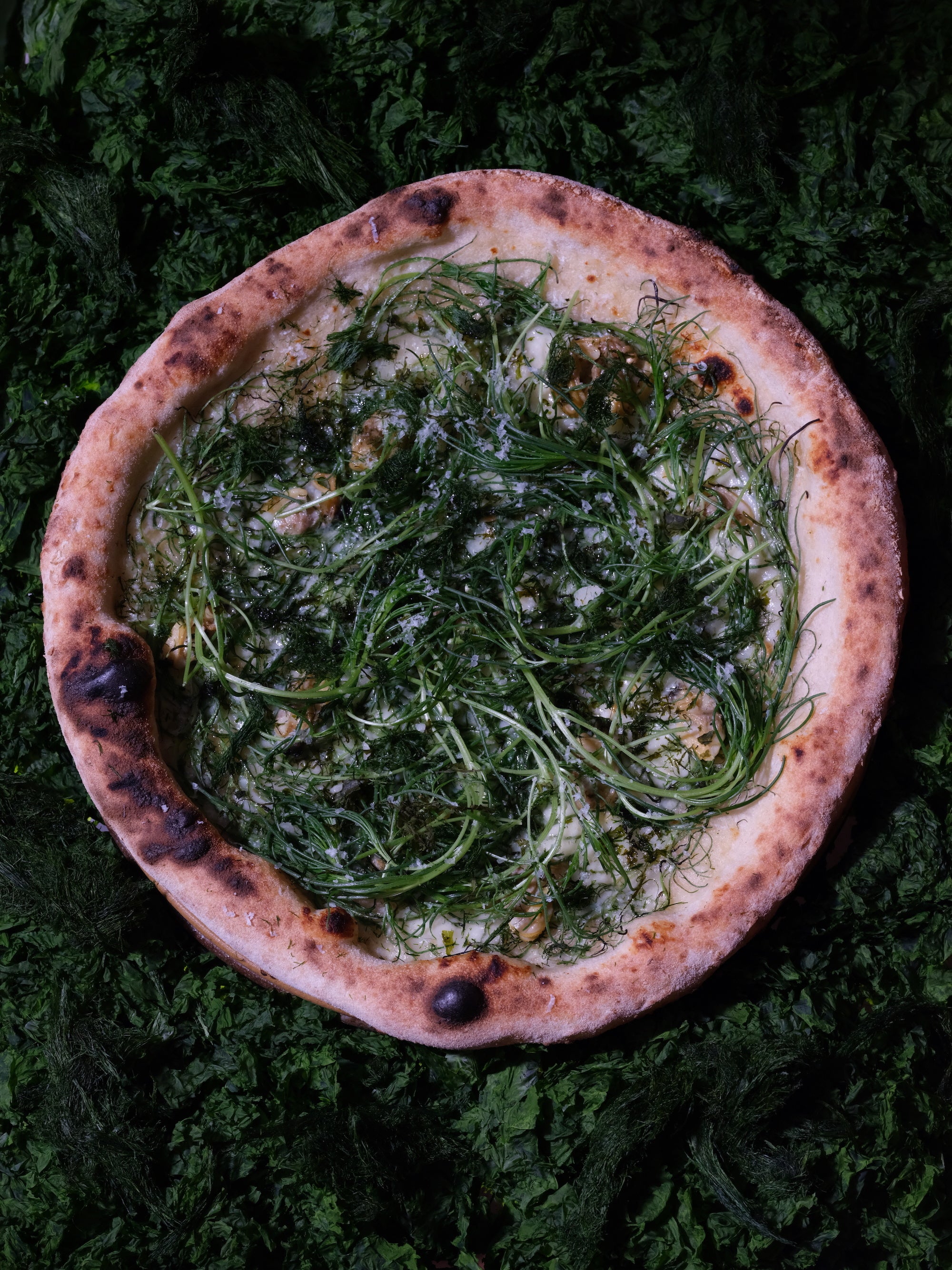 東京店では、世界の食文化を繋げるオリジナルのピザ、店内工房で作る自家製フレッシュチーズ、サステナブルな食材をつかった日本独自のメニューを用意。