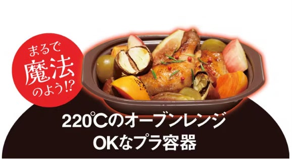 『ベイクック』とは、通常のプラスチック容器では耐えられない220℃の高温下でもオーブンレンジでの調理が可能な製品。高温調理に最適で、グラタンやミートローフ、キッシュなどの料理を簡単にし、後片付けも楽々という新しい調理のスタイルを提案しています。