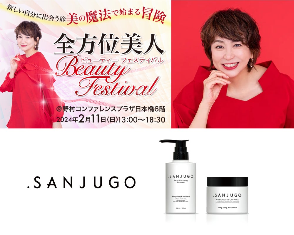 ヘアケアブランド「.SANJUGO」、美容YouTuber・SHOKO主催の「全方位美人Beautyフェスティバル2024」に協賛!