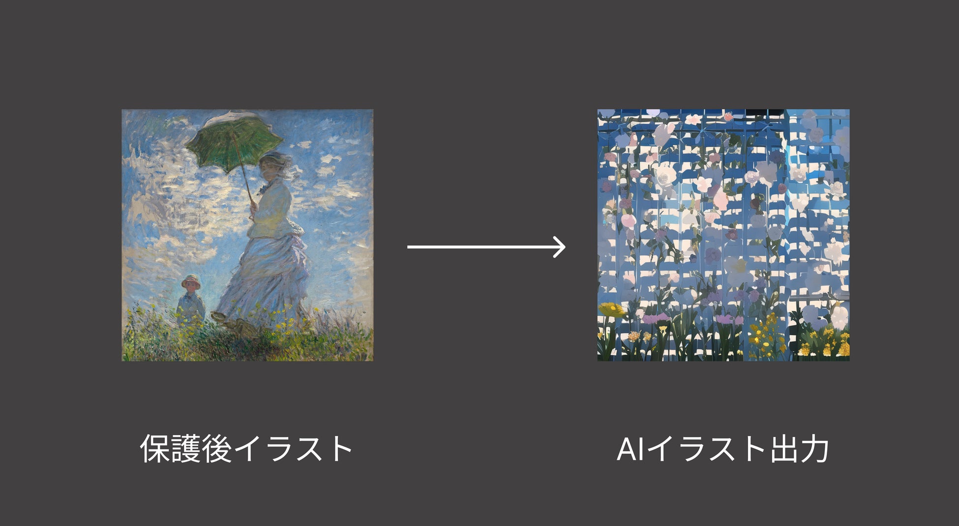 既存の各イラスト投稿サービスが、スクレイピング対策の強化や、利用規約でのAI学習禁止の明記などの策を講じる中、当社では、イラスト自体に保護をかける方法により、クリエイターが安心してイラストを世の中に公開できる場の提供を目指しております。