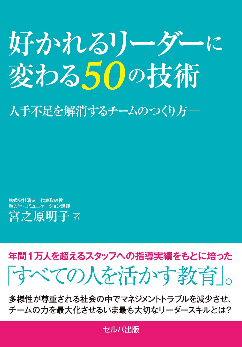 そんな中で、自身も実践する「魅力学」「コミュニケーション学」「接遇・マナー」が、経営者やリーダーにも活用できることを紹介し、上梓した『好かれるリーダーに変わる50の技術 -人手不足を解消するチームのつくり方-』。本書では魅力ある人材を育む術を、「相手を理解するコミュニケーション」や「人は人で磨かれる」など全7章から構成し、「魅力」と「コミュニケーション」で会社を元気にしてきたリアルな手法を公開しております。