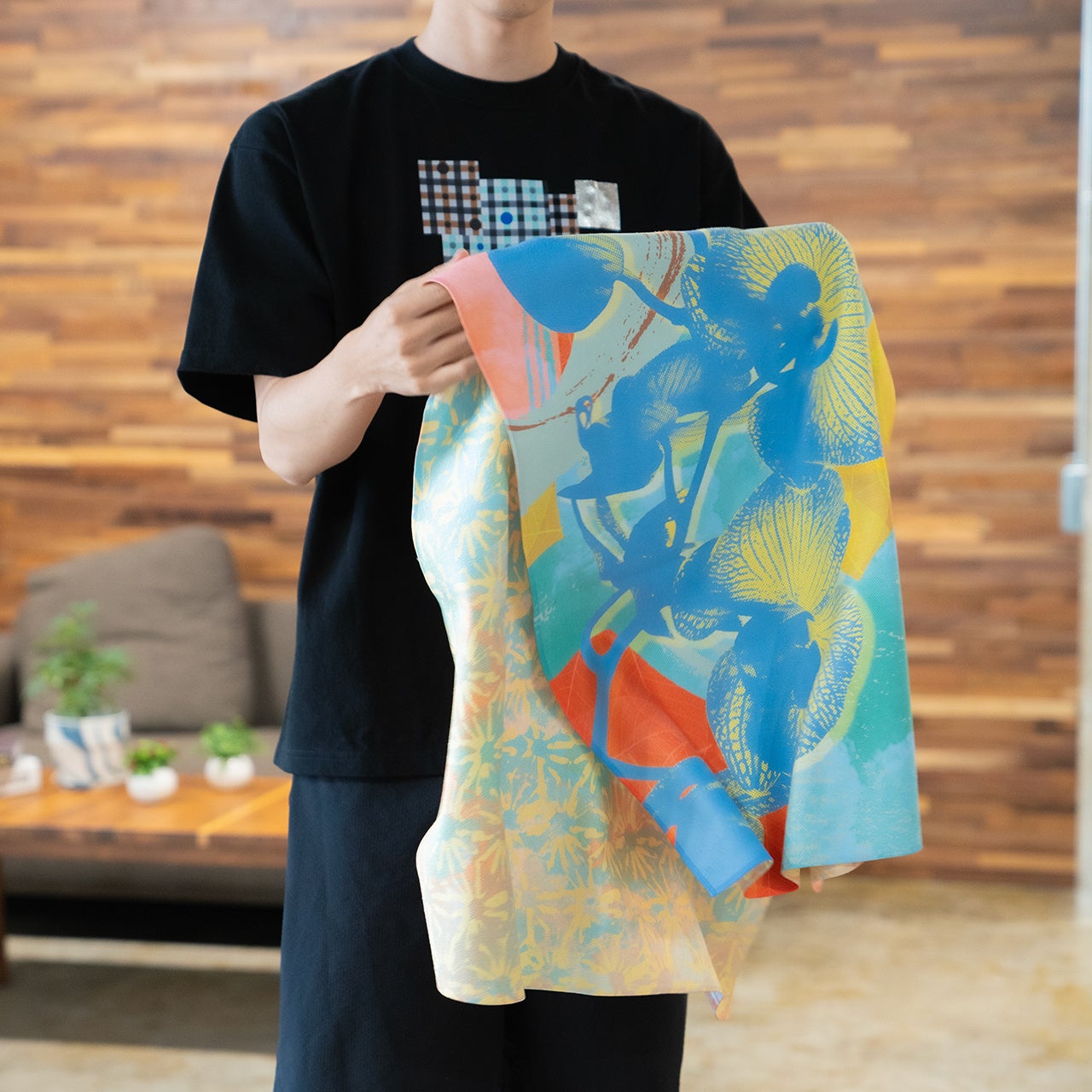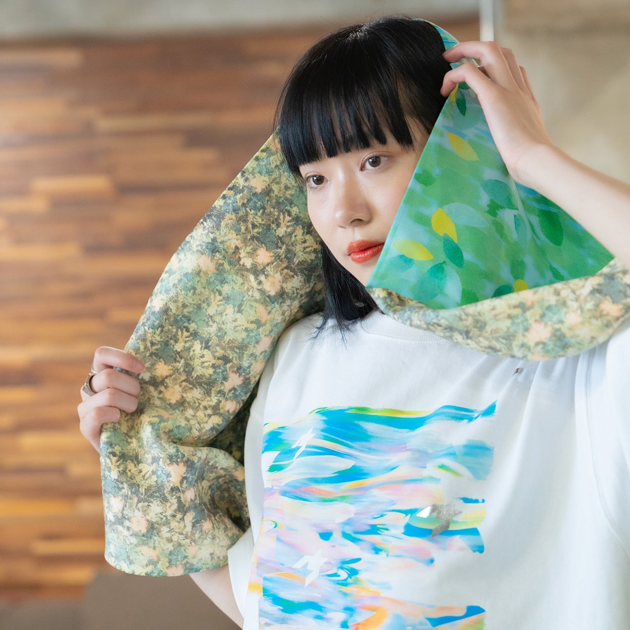 グラフィックのプリントの鮮やかさや、縫製の細部まで行き届いた丁寧さは、日本製ならでは。生地とプリントに精通するファクトリーが素材を厳選しています。
