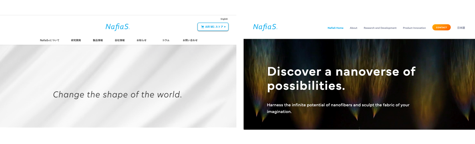 ナフィアス様は、ナノファイバーに関するテクノロジーを有する企業で、2023年7月に欧州での展示会等を訪問するにあたり、英語版ホームページの制作が必要と考えておられました。