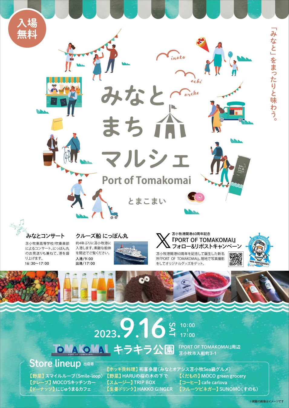 また、開港60周年を記念して9月16日(土)に「クルーズ船にっぽん丸」×「みなとまちマルシェ」を開催します。