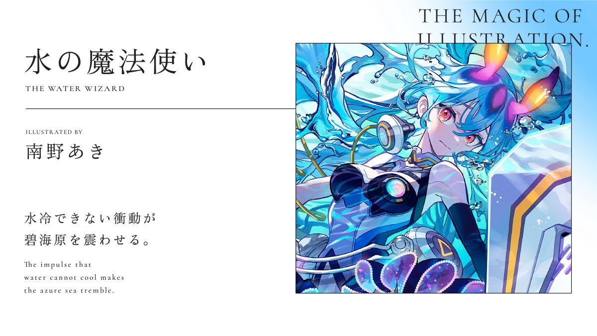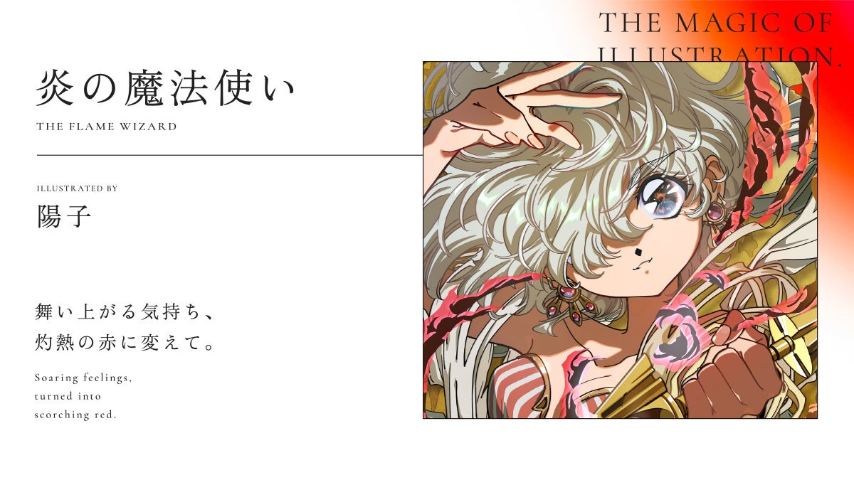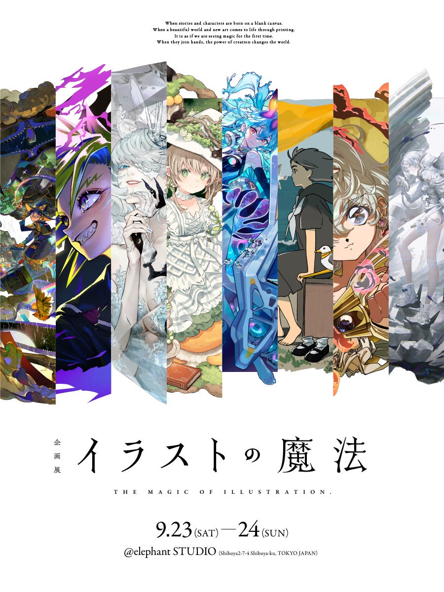 エンターテインメントの業界を中心としたデザイン制作に携わるBALCOLONY.がイラストレーションをテーマにした企画展を開催。 初回となる企画展「イラストの魔法」では『魔法』をコンセプトに【火の魔法使い】【水の魔法使い】【風の魔法使い】...といった8つの作品を、8名の新進気鋭のイラストレーターと共同で制作。デジタルイラストレーションをアートピースとして表現する新たな展示会となっている。