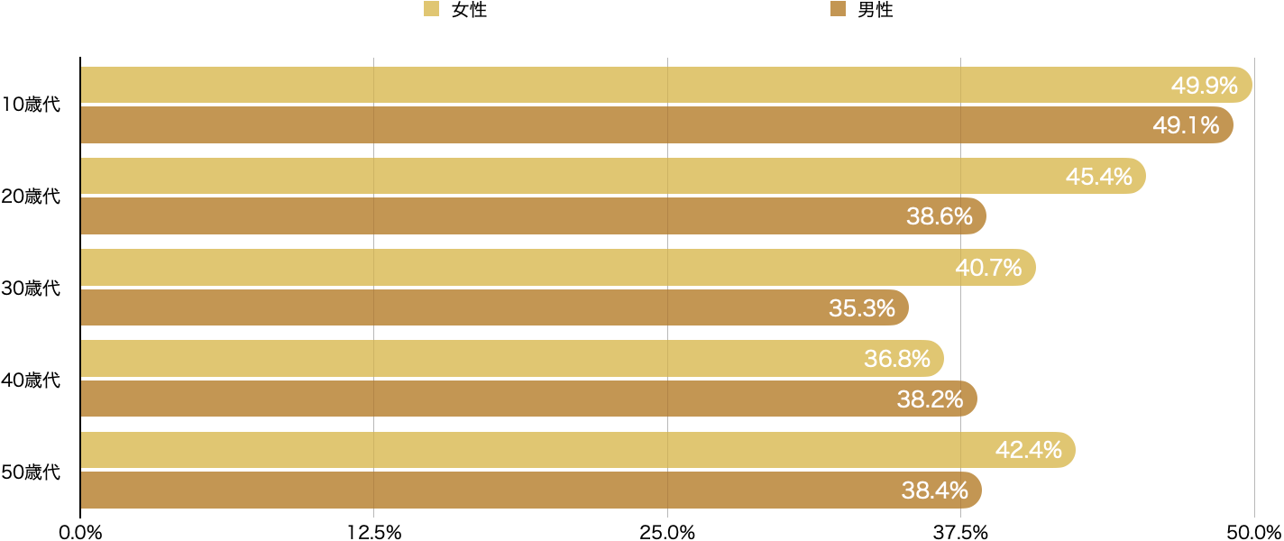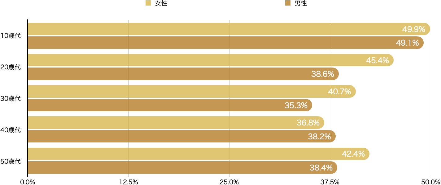 ※調査対象者は15歳以上のため「10代」の表記は「15歳〜19歳」の結果となります。