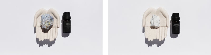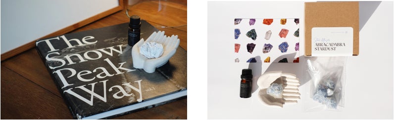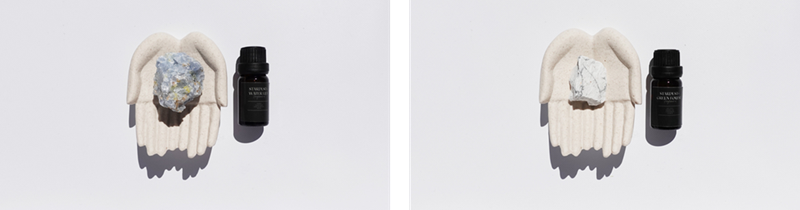 オブジェハンドに天然石を乗せ、オイルを数滴垂らせばハーブやスパイスの豊かな香りが、ゆっくりゆっくり広がります。