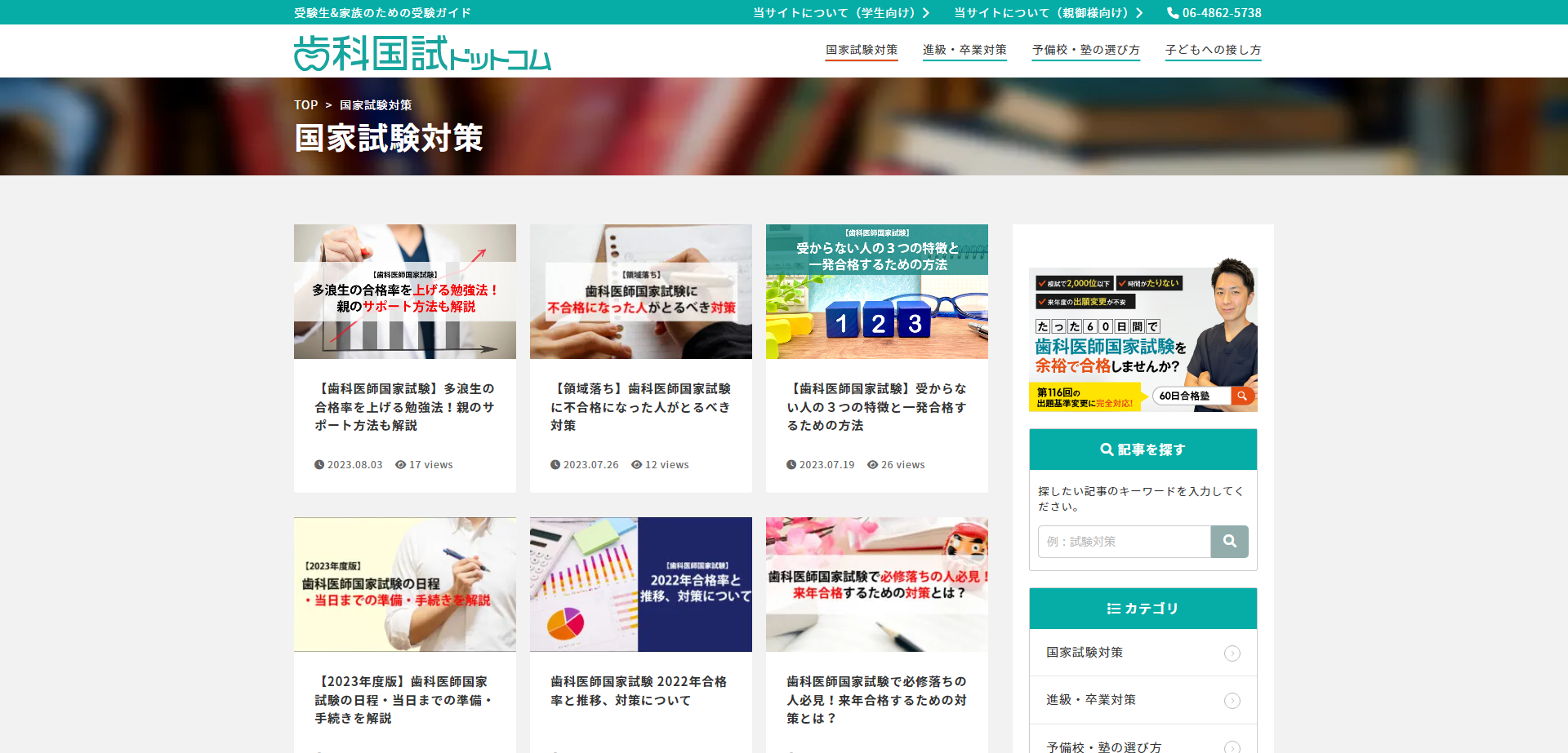 主に歯科医師国家試験の情報や勉強メソッド、親御様向けのノウハウなどを提供しており、歯科医師国家試験60日合格塾の塾長 和氣正和が全ての記事を監修しています。