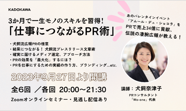 今回、自分自身がライフシフトするきっかけとなったこのPRスキルを一人でも多くの方にお伝えしたいと、日頃は法人対象で実施している講座をKADOKAWAとの講座に限り、一般向けに開催させて頂くことになりました。