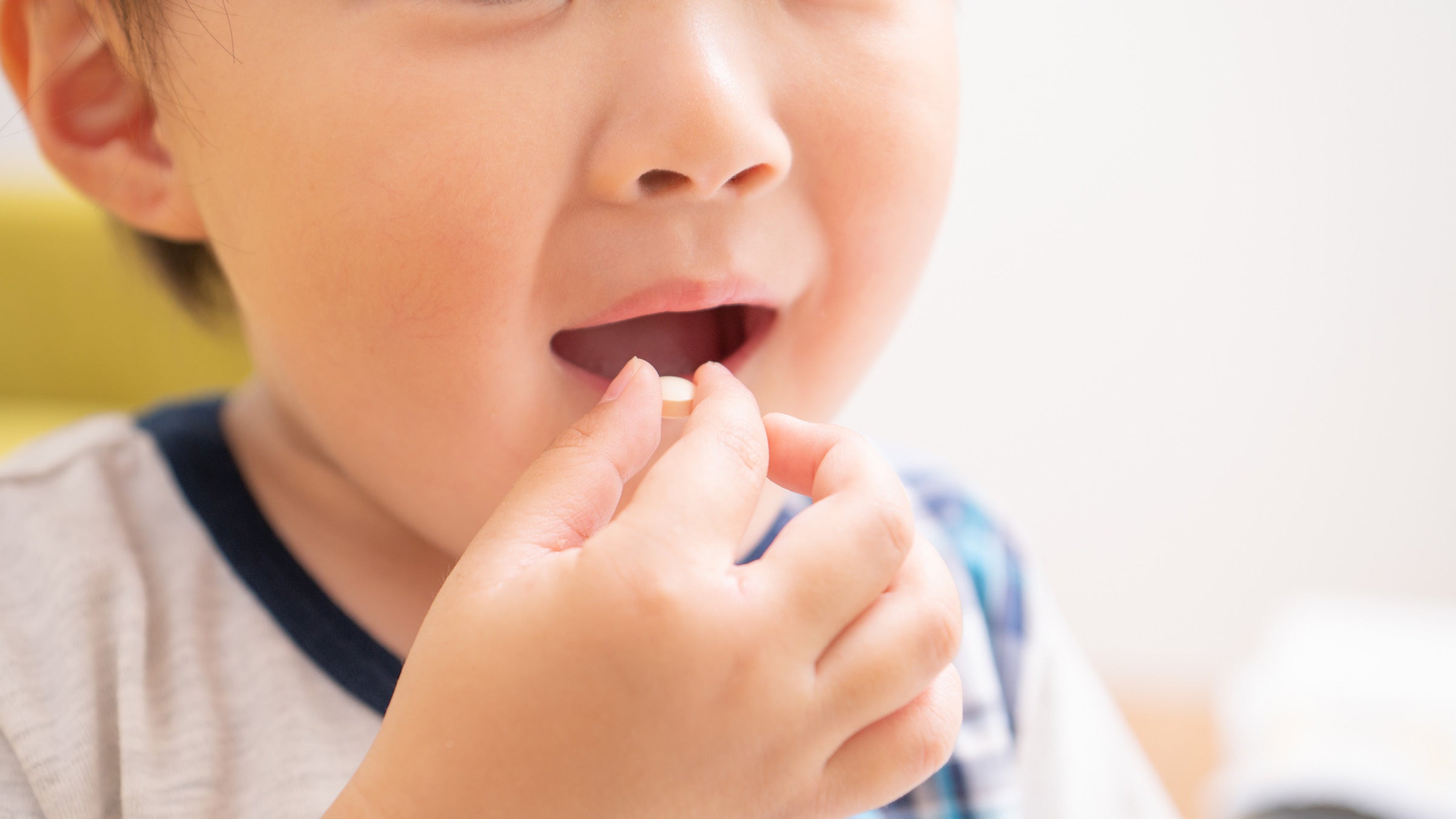 専門医と共同開発した、りんご風味でお子様でも噛んで食べられる粒タイプサプリメント