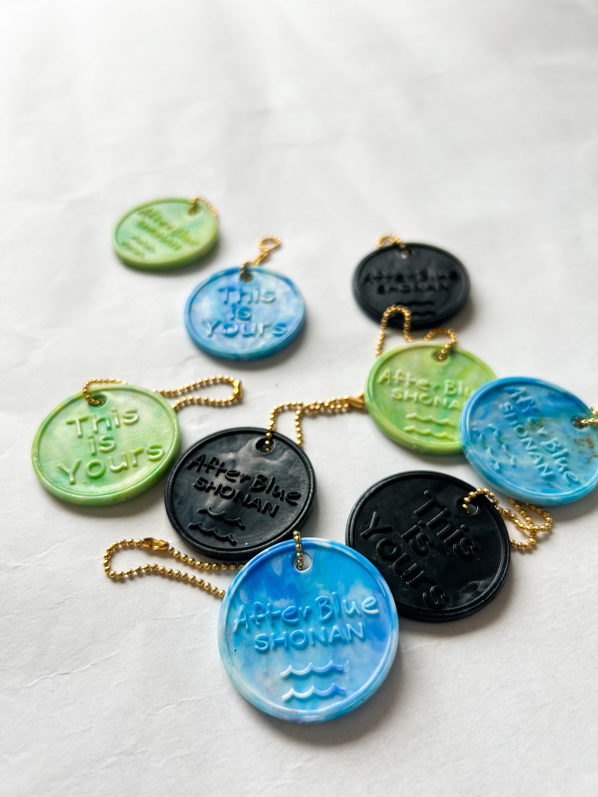 すでにリサイクルもされているプラスチックですが、日常生活のなかでリサイクルされたものを気にする機会は多くありません。今回、製作を開始したグッズでは、廃棄される身近なプラスチック製品を素材に活用し、素材の色が混じったマーブル模様が特徴となっており、ゴミや再生プラスチックなどを考えるきっかけにできればと考えております。