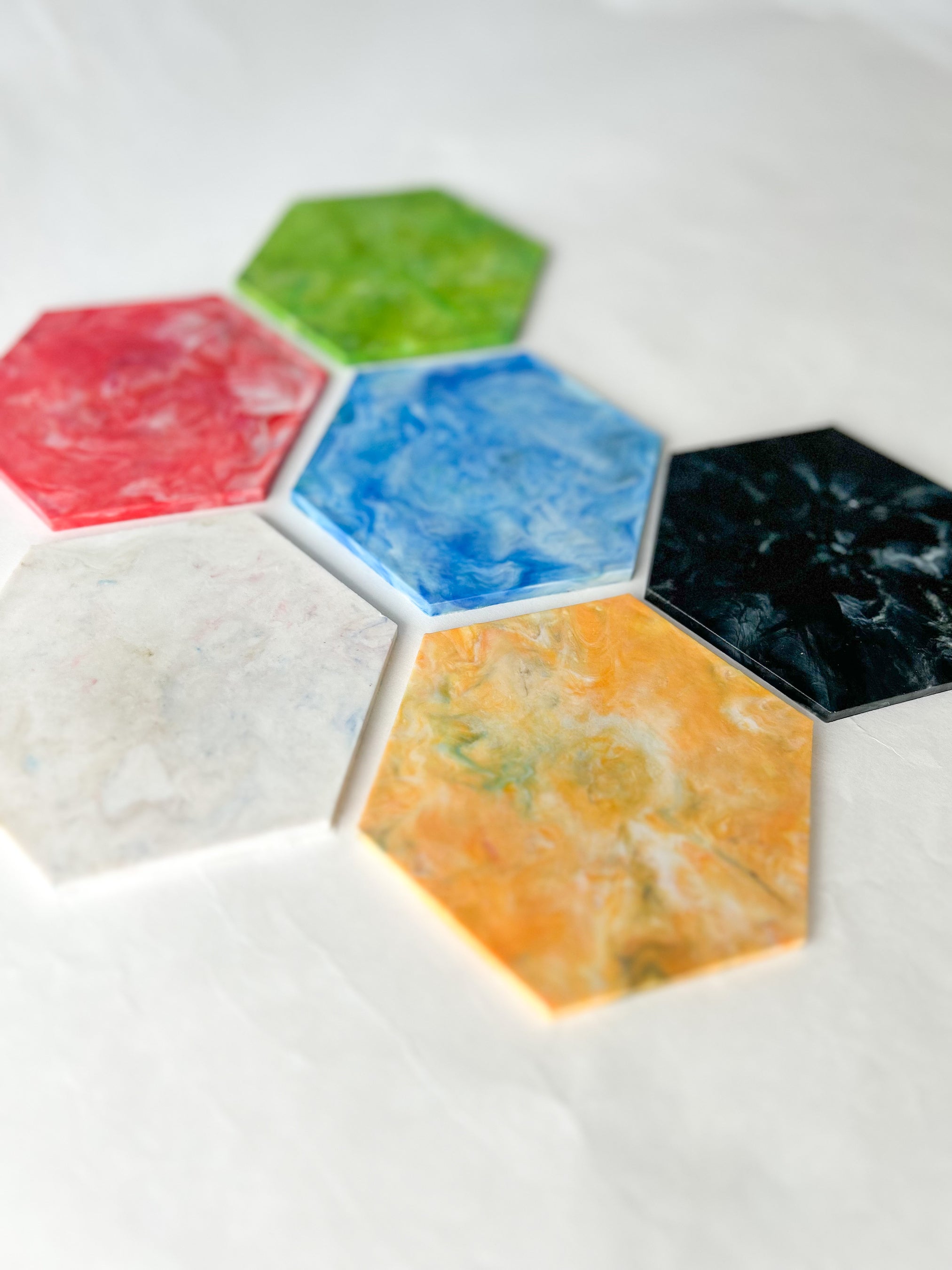 素材の色が活かされたカラフルなマーブル模様が特徴の再生プラスチックグッズ