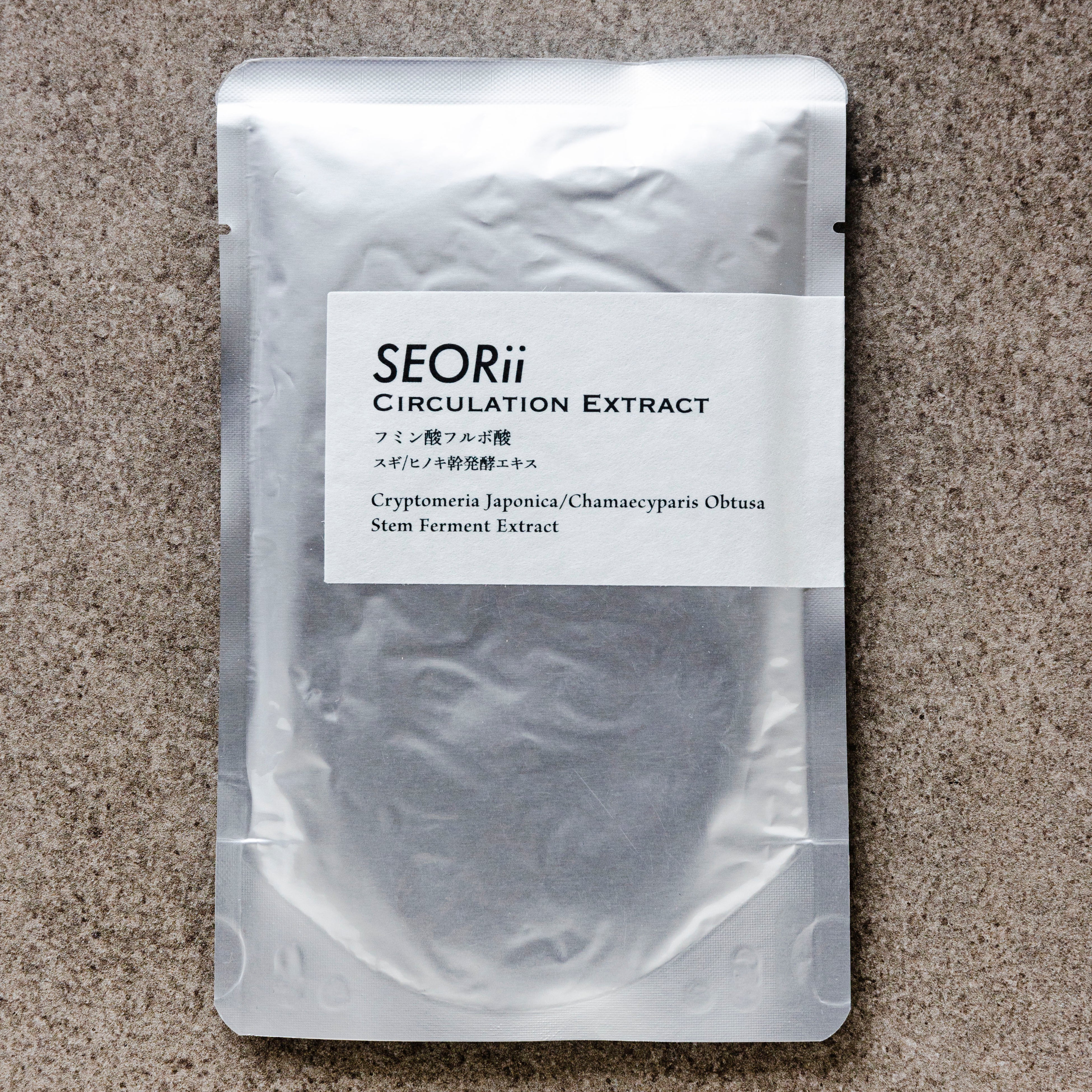 『SEORii project』第1弾アイテム、「SEORii Circulation Extract フミン酸フルボ酸(内容量:100ml、価格:7,128円(税込))https://seorii-project.com/products/seorii-circulation-extract」は、間伐材針葉樹(スギ・ヒノキ)を長期熟成して抽出したフミン酸とフルボ酸を水溶化した国産のオーガニック天然食品(化学物質不使用、無味無臭)です。フミン酸・フルボ酸は、毎日のように森で作られている植物の最終分解物の有機酸で、海外でも今注目を集めています。2023年6月発売以来、3回目の追加生産を行うなど好評を博しております。