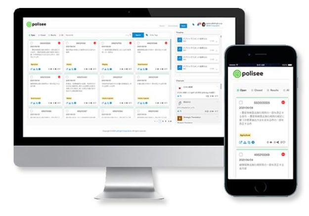 現役弁護士とサンフランシスコエンジニアチームのタッグにより開発されたpolisee®は、日本の法令改正・政策立案プロセス(policy)を可視化(see)する法令改正モニタリングプラットフォームです。