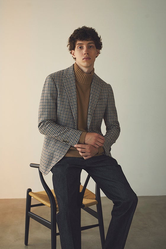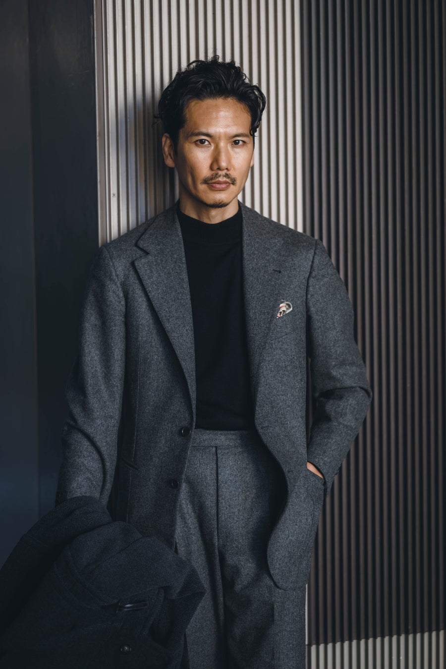 立体的で美しいシャープなカッティングのジャケット、美しいシルエットのトラウザーズはスマートで上品な大人の雰囲気を醸し出します。