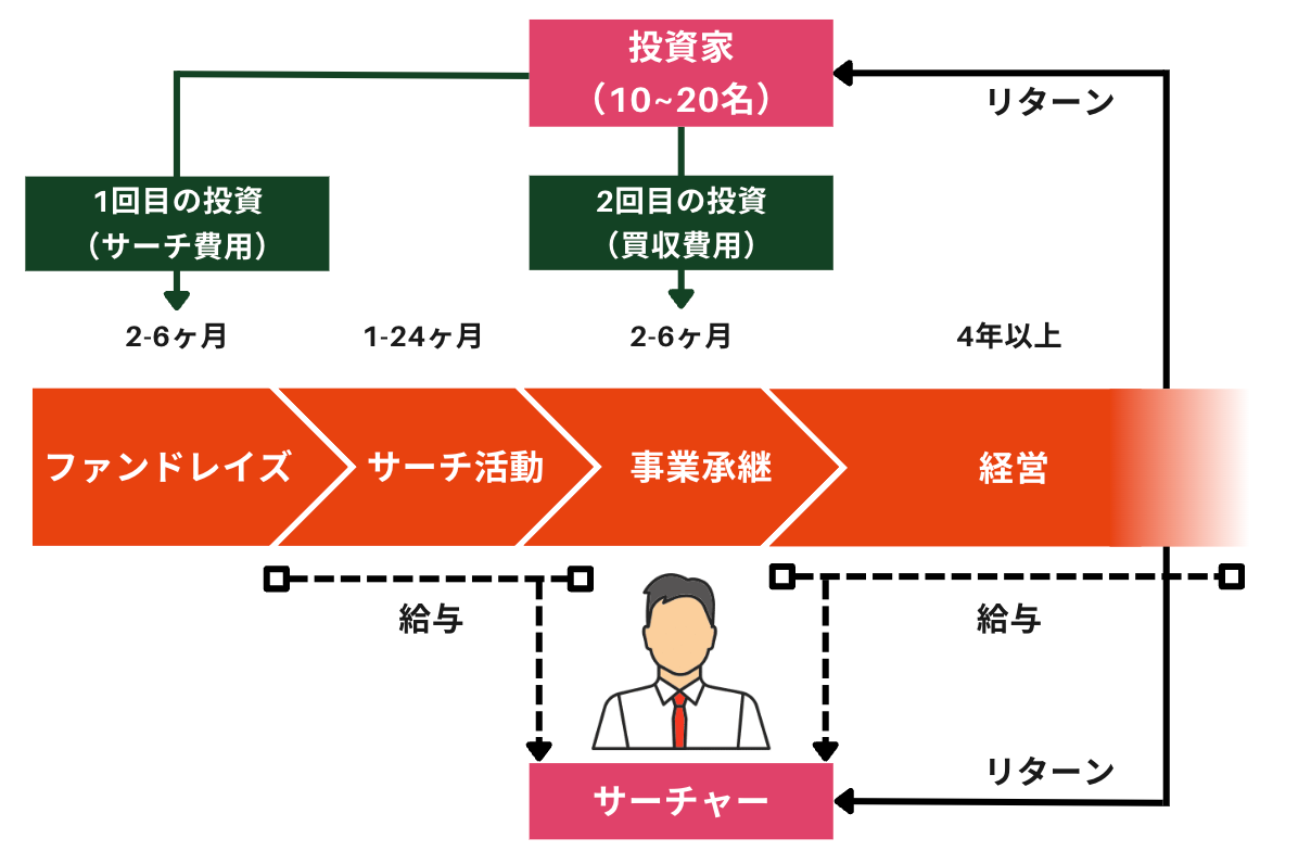 私たちはサーチファンドによる企業の事業承継を通じ、承継企業の更なる成長を追求するとともに、若者が経営者として活躍できるビジネスモデルの確立を目指します。