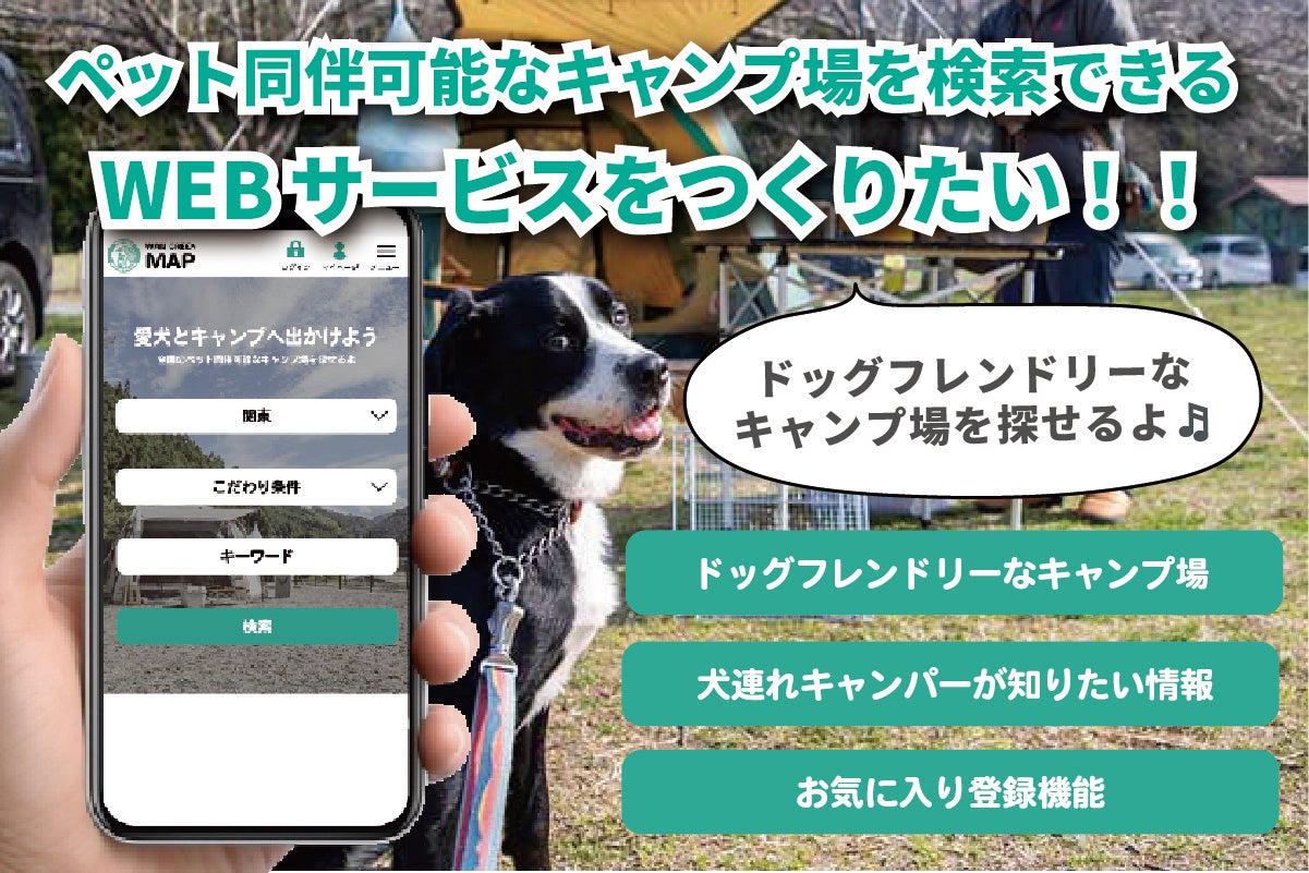 「愛犬と一緒に行けるキャンプ場検索サービスを作りたい!」開発費用を集めるためのクラウドファンディングを開始