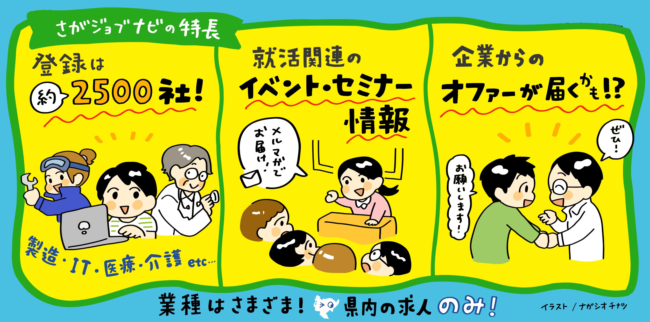 佐賀県で就職を希望する全ての求職者と、人材を募集している佐賀県内の企業を結ぶWebサイトです。