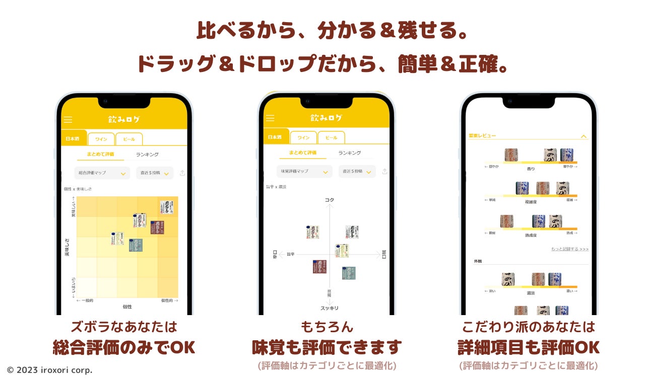 世界初*! 飲んだお酒をドラッグ&ドロップで相対評価できるスマホアプリ「飲みログ」をリリースします!