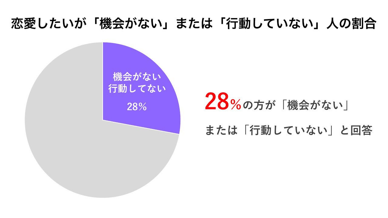 恋愛したいが「機会がない」または「恋愛のために行動していない」と回答した人はアンケート回答者全体の約28%