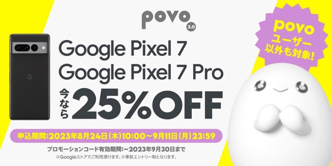 Google ストアで対象のGoogle Pixel購入時に利用いただける25%割引コードを配布します。
