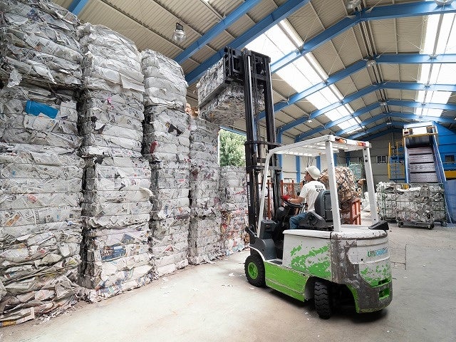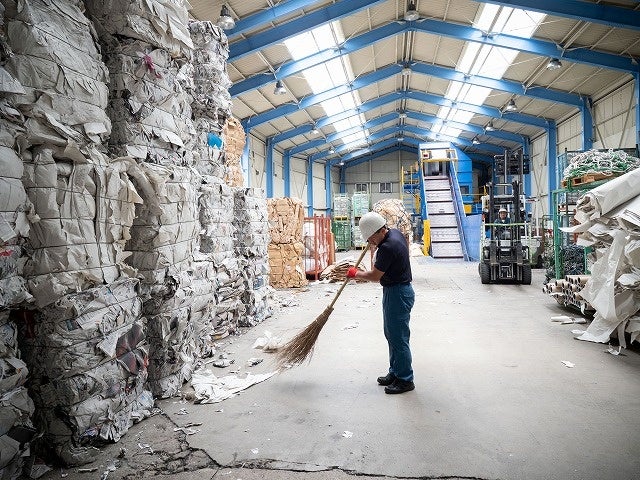 主に、新聞社の印刷工場から出る古紙を回収、圧縮加工し、製紙原料として納める