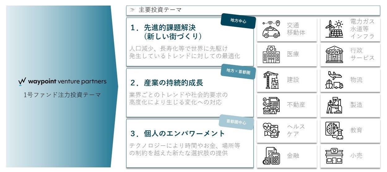 これまでwaypoint vpでは、中国・四国エリアにおいて各種アクセラレータープログラム等に参画してきました。1号ファンドにおいても、首都圏および中国・四国エリアを主要な注力地域として投資を行なってまいります。