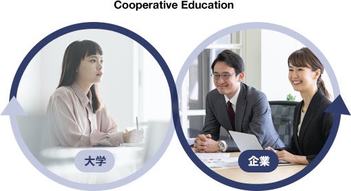 1906年に米国シンシナティ大学工学部で「学内の授業プログラムと学外の就労体験型学修プログラムを交互に受けるカリキュラム」が開発されて以降、米国、カナダ、欧州で盛んに取り入れられています。学生は、一定期間企業で働くことで就業体験と労働賃金、大学の単位を修得するとともに、実践力や総合的な社会人基礎力を身につけることができます。