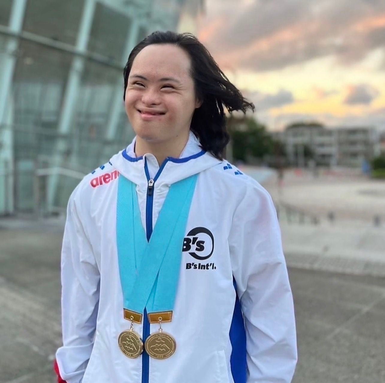 2019年頃から少しずつ国内の大会でダウン症区分ができるようになり、第25回日本知的障害者選手権水泳競技大会ダウン症クラスにおいて、初代日本チャンピオン(50m背泳ぎ 優勝、100m背泳ぎ)となった経歴をはじめ、数々の大会で優勝し、ダウン症のアスリートとしてその道を切り開いてきたパイオニアの一人です。