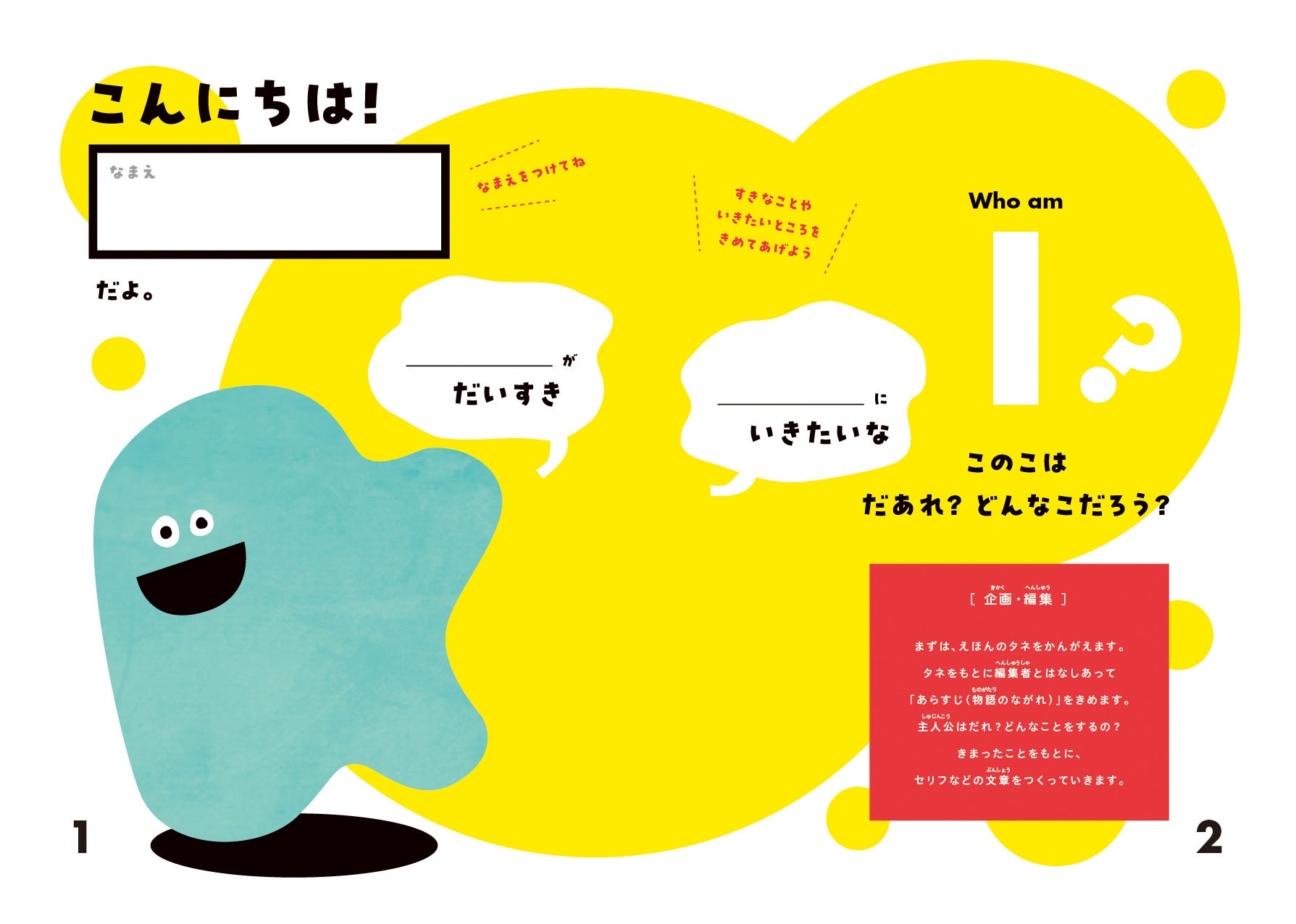 絵本ってどうやってできてるの? 折って、綴じて、切って、1枚の大きな紙から本になるまでを、実際につくりながら学べるワークショップ。絵本の内容は本づくりの各工程をユーモラスに描いた完全オリジナル! 主人公の名前を考えたり、フォントを選んだり… 読み進めるとでてくる「アクション」をこなしていくことで、自分だけの一冊が完成します。