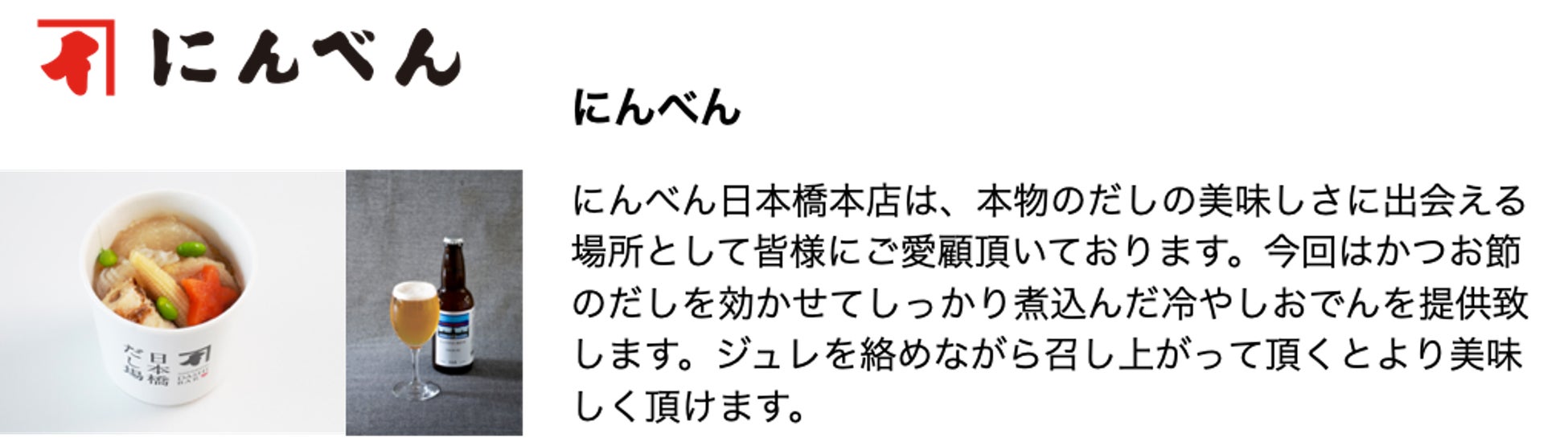 ひんやり系のお酒やおつまみもお楽しみいただきつつ、晩夏の日本橋「福徳神社」のすぐ横の森の中、