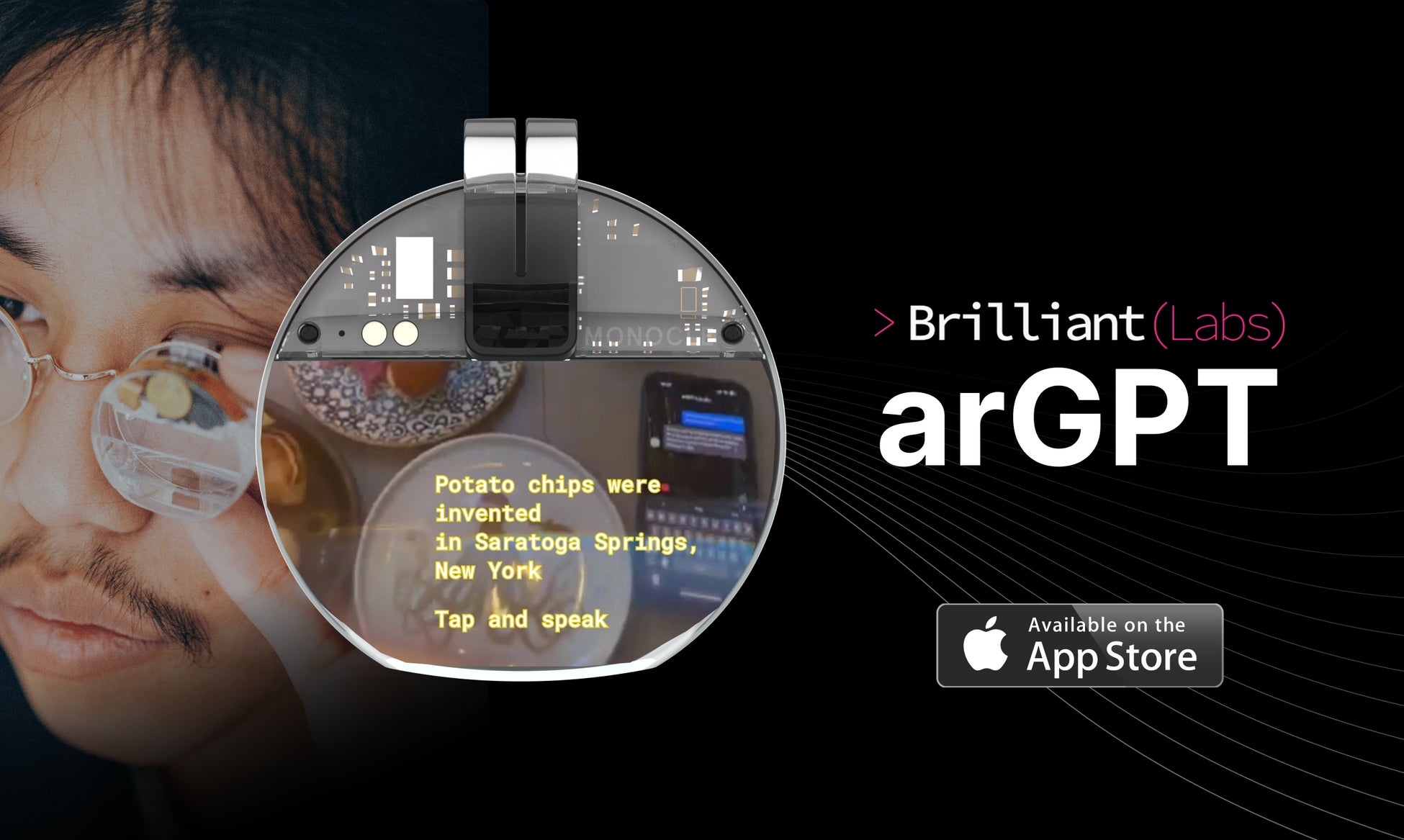 2023年8月17`日、シンガポールのBrilliant Labs(ブリリアントラボ)は、スマートグラス上でChatGPTを動かせる、iOS対応アプリケーション「arGPT」を発表しました。同Brilliant Labsが提供する、メガネに取り付け方オープンソースARデバイス「Monocle AR」を利用すれば、ハンズフリーで、声のみでChatGPTを動かせます。