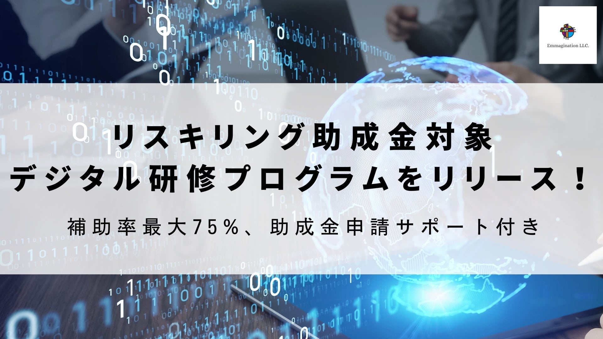 合同会社Emmaginationは、2023年9月1日から新しいデジタル研修プログラムのリリースをしました。上場企業も多数導入している安心安全の研修プログラムと提携。更に、リスキリング助成金の申請サポートまで行い、導入までのハードルとコストをできる限りカットいたしました。
