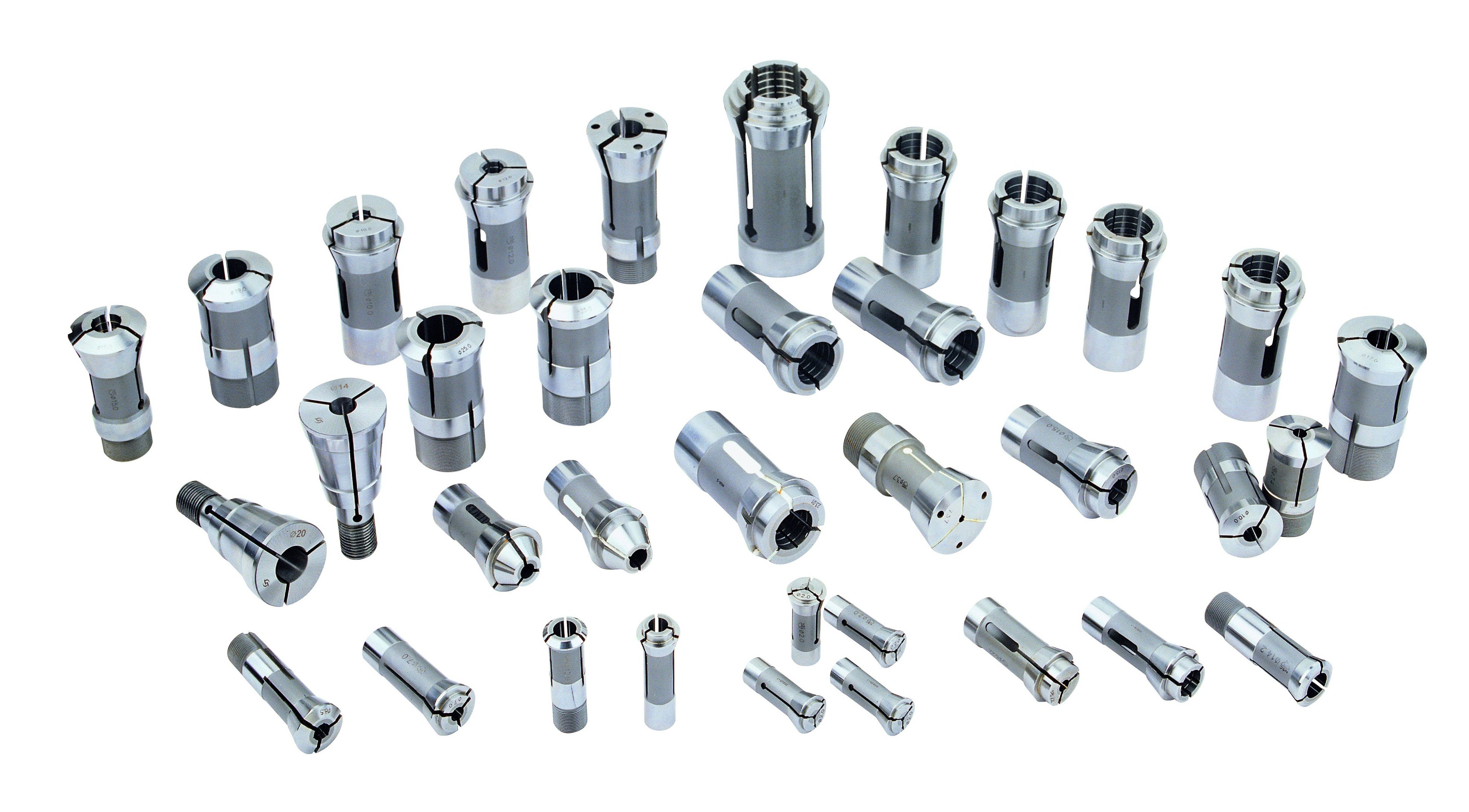 コレットチャックは、工作機械に取り付けられる部品(治具)で、加工対象物(ワーク・材料)を正確に掴み、高精度な機械加工に欠かせないツールです。主に、鋼(スチール)、超硬、セラミック、サーメット、樹脂などさまざまな材質で製造されています。円筒部全体で材料を掴むことで、材料に傷がつきにくく、硬い材料(鉄、ステンレス、鋼など)だけでなく、薄肉パイプ、真鍮、アルミ、プラスチック(樹脂)などの柔らかい材料や既に仕上げられた部分を確実に固定するのに適しています。