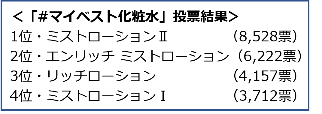 ■6月から開催した「#マイベスト化粧水」アワードの投票結果を発表 4種類から選ばれたのは?