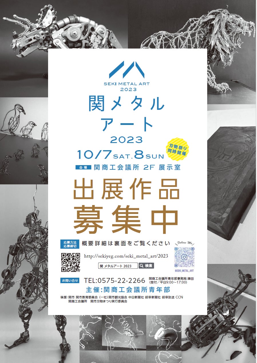金属のアート作品展「関メタルアート展2023」の開催にあたり、展示作品を募集します。