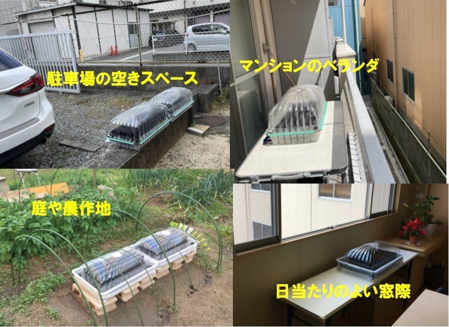 電源が不要で、日射のみをエネルギーとして利用。駐車場やマンションのベランダ、庭などの日当たりの良い場所で簡単に使用できます。造水量はそれぞれの条件で異なります。