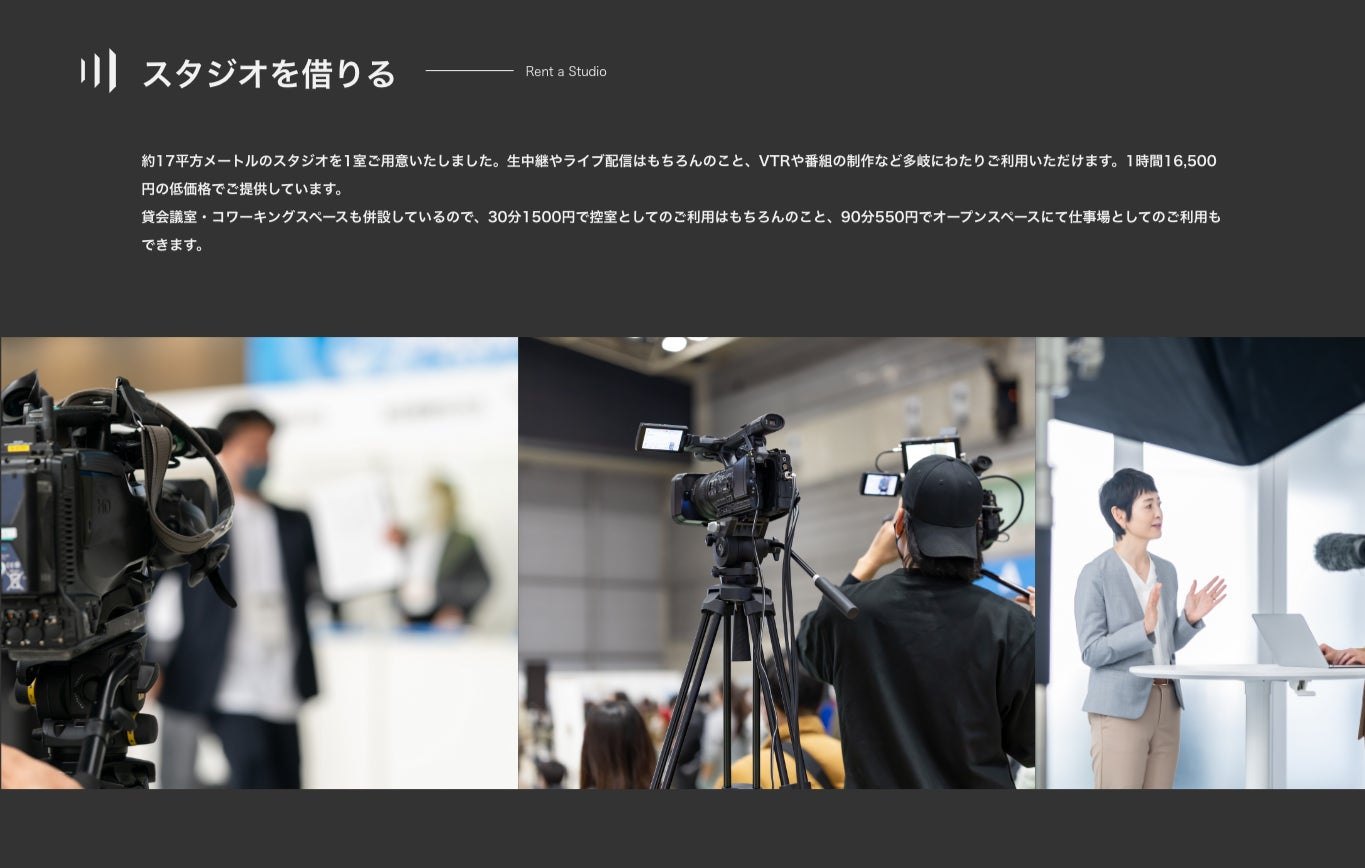 撮影・配信・企画・運営・自社スタジオ・動画制作・スタッフ派遣・機材持ち込みなど、お客様それぞれのニーズにお応えします。