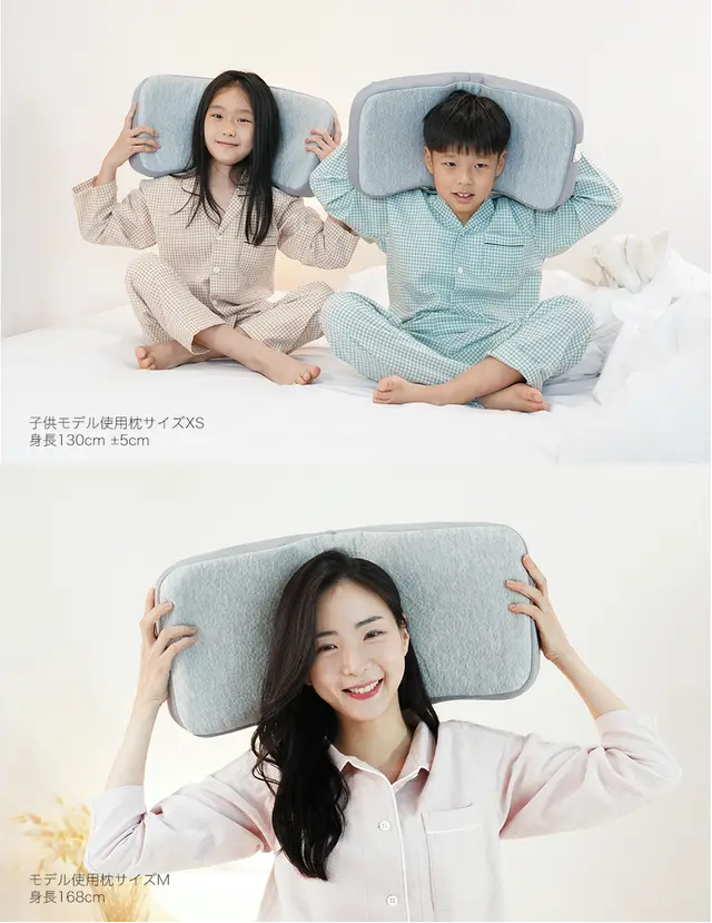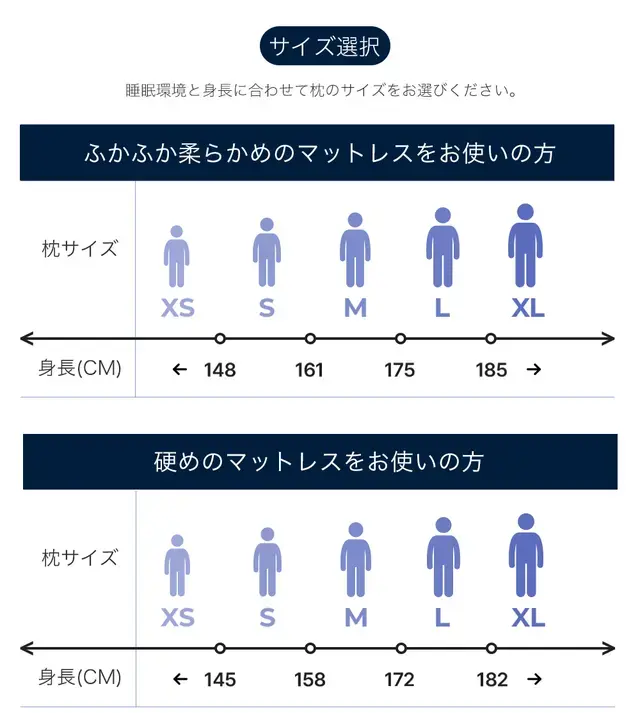 自分の身長に合わせて適切なサイズを選べば、自分の体にぴったりの枕のサイズが体験できます。