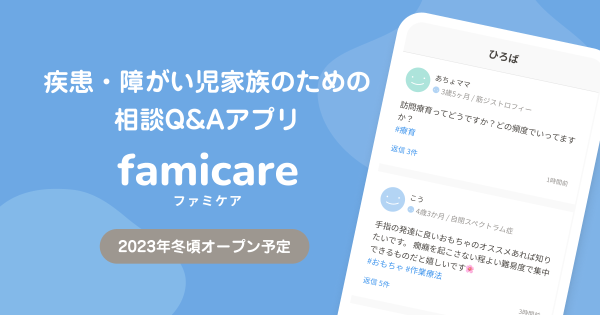 疾患児や障がい児家族の毎日を楽しくする情報サイト「ファミケア」を公開、会員制の相談QAアプリ先行登録も開始