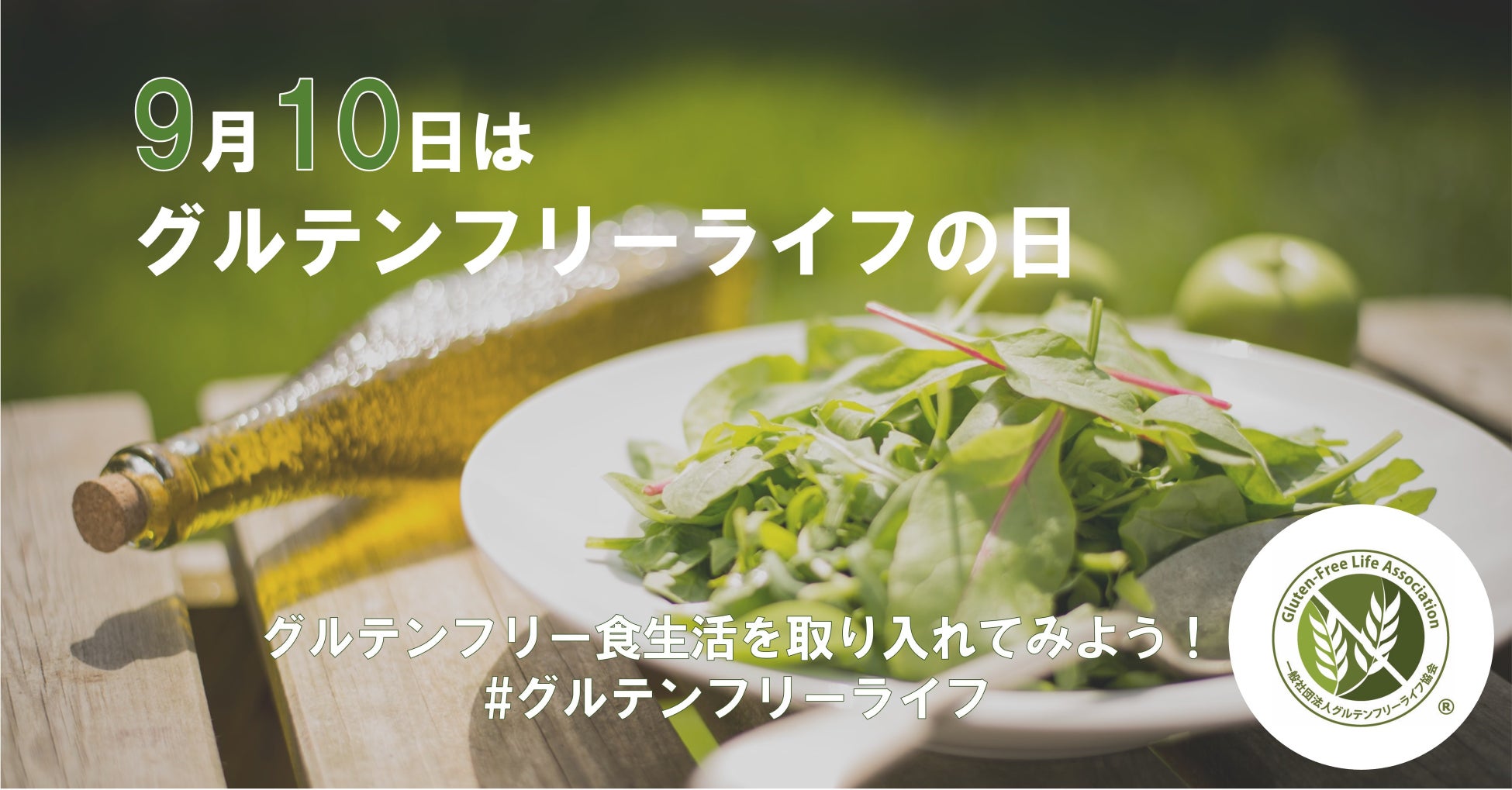 グルテンフリーを取り入れた食生活について認知を広げ、実践する機会を持っていただくため、語呂合わせで覚えやすい「9月(グル)10日(テン)」をグルテンフリーライフの日に制定しました。