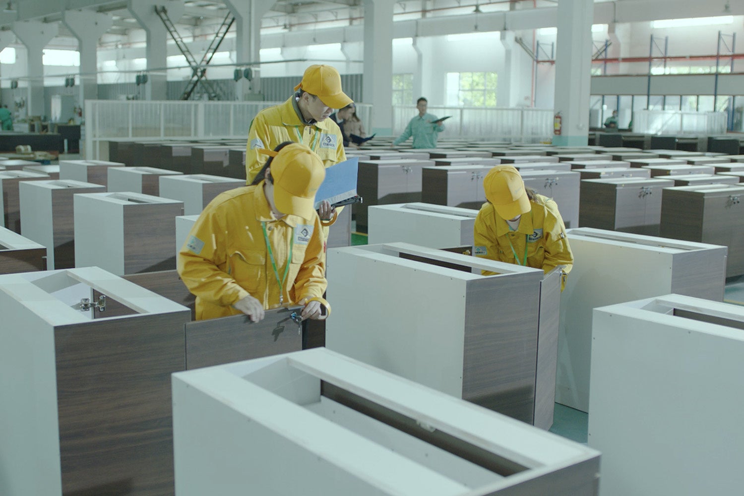 1995年設立の中国自社工場は、35,000㎡の敷地に、木・金属・アクリル・プラスチック成形の工場を1か所に集約。あらゆる素材の什器を、コストを抑えて大量生産することができます。