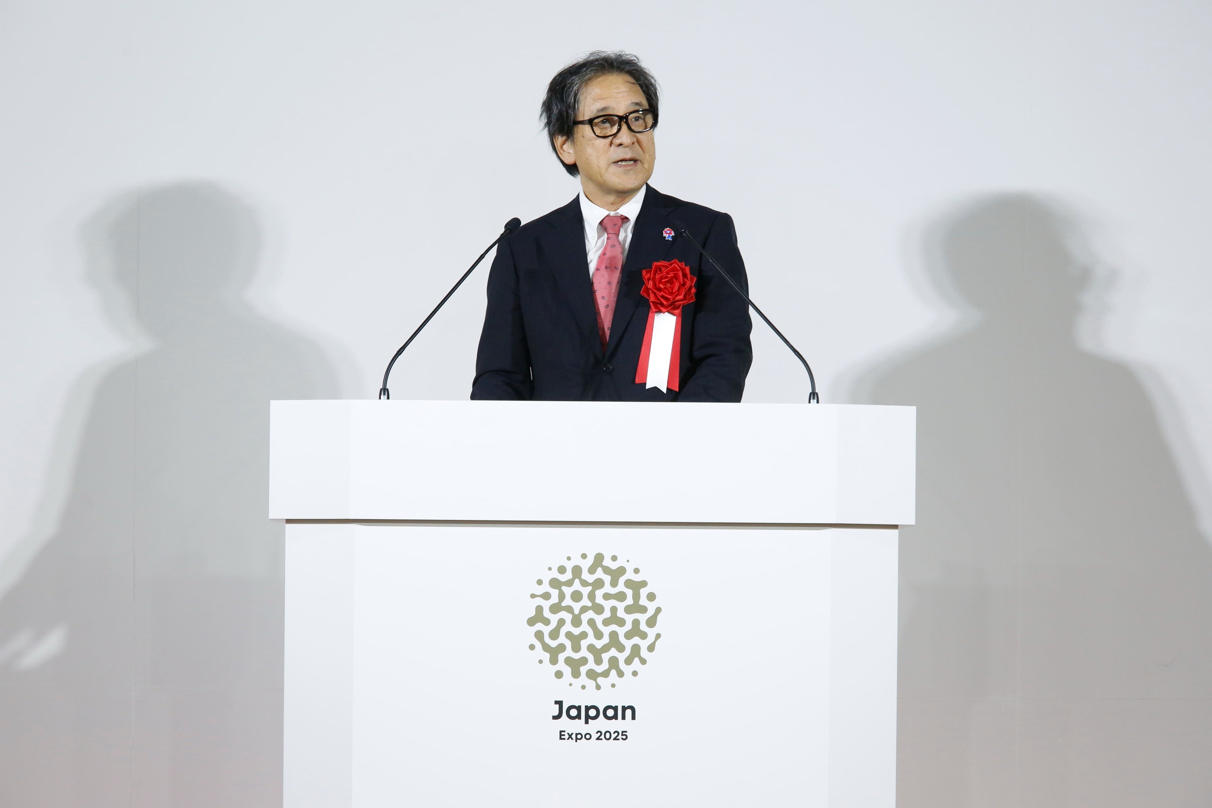 博覧会協会代表挨拶では、「開催国政府として、テーマをプレゼンテーションする拠点であり、いわば万博の顔という重要な場所。前回、前々回のパビリオンのメッセージ性の強さが印象に残っており、そのようなパビリオンを超えたパビリオンになることを目指しております」と意気込みを述べ、「日本館のテーマ、来場者一人一人が他の命との繋がりや循環の中で生かされていることに気づくこと、持続可能性の問題を自分のこととして考えること、それぞれの行動を変えていくことを目指すという素晴らしいアイデアであり、万博の力を信じて日本館の存在が新時代の万博を実現する中核となり、日本館が末長く、人々の心に残るパビリオンとなり、大阪・関西万博の成功となることを願います」と挨拶を締め括りました。