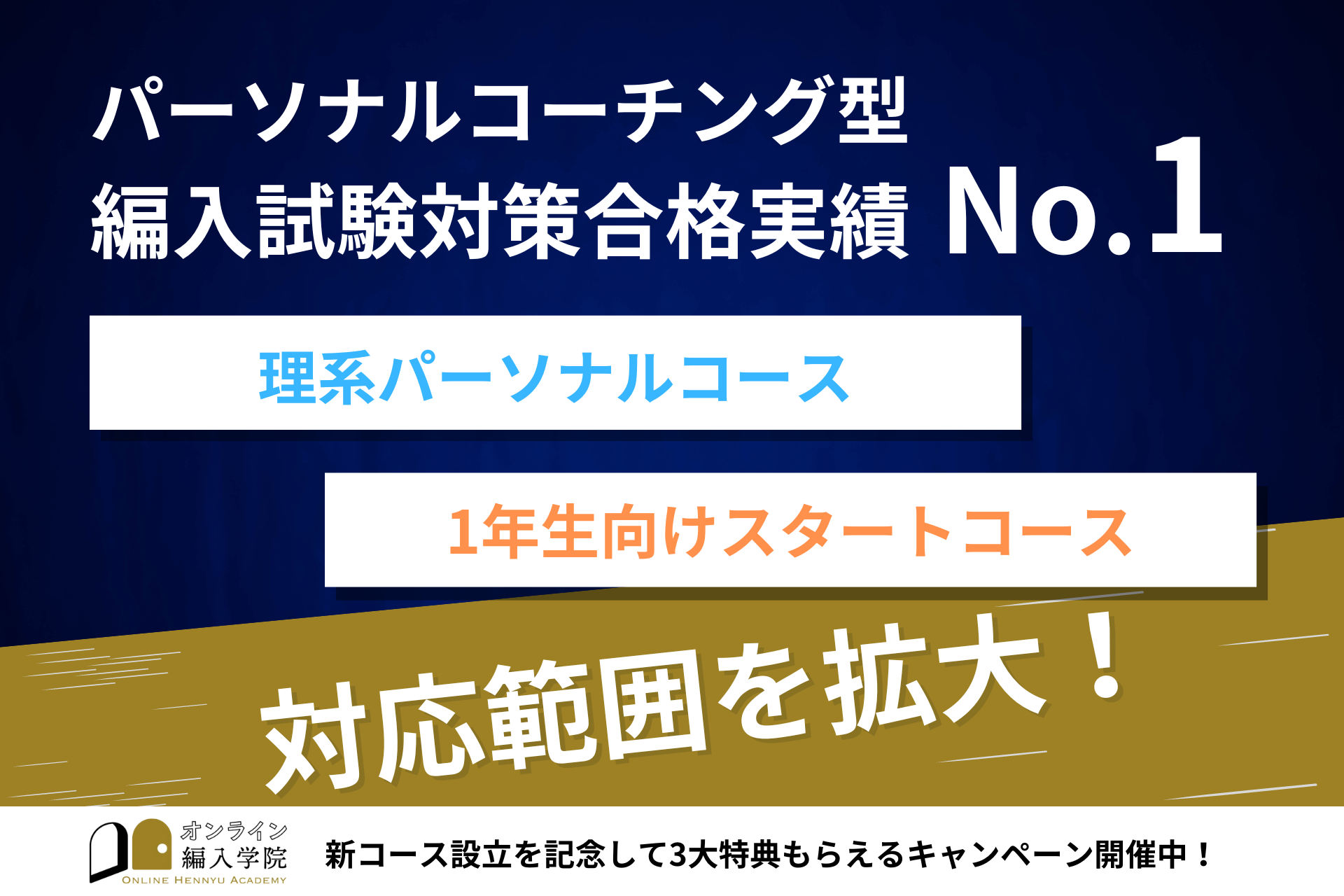 パーソナルコーチング型学習指導を手掛けるオンライン編入学院、新たに“理系コース”と“大学1年生向けスタートコース”を開設で、全ての大学編入受験生に手厚いサポートを実現!