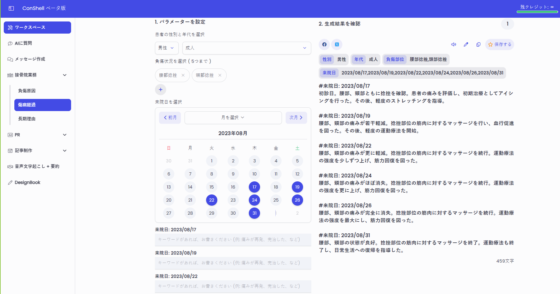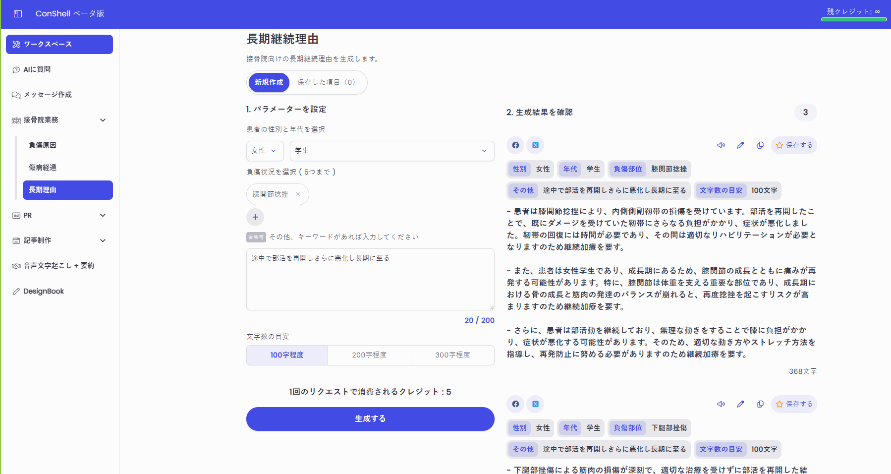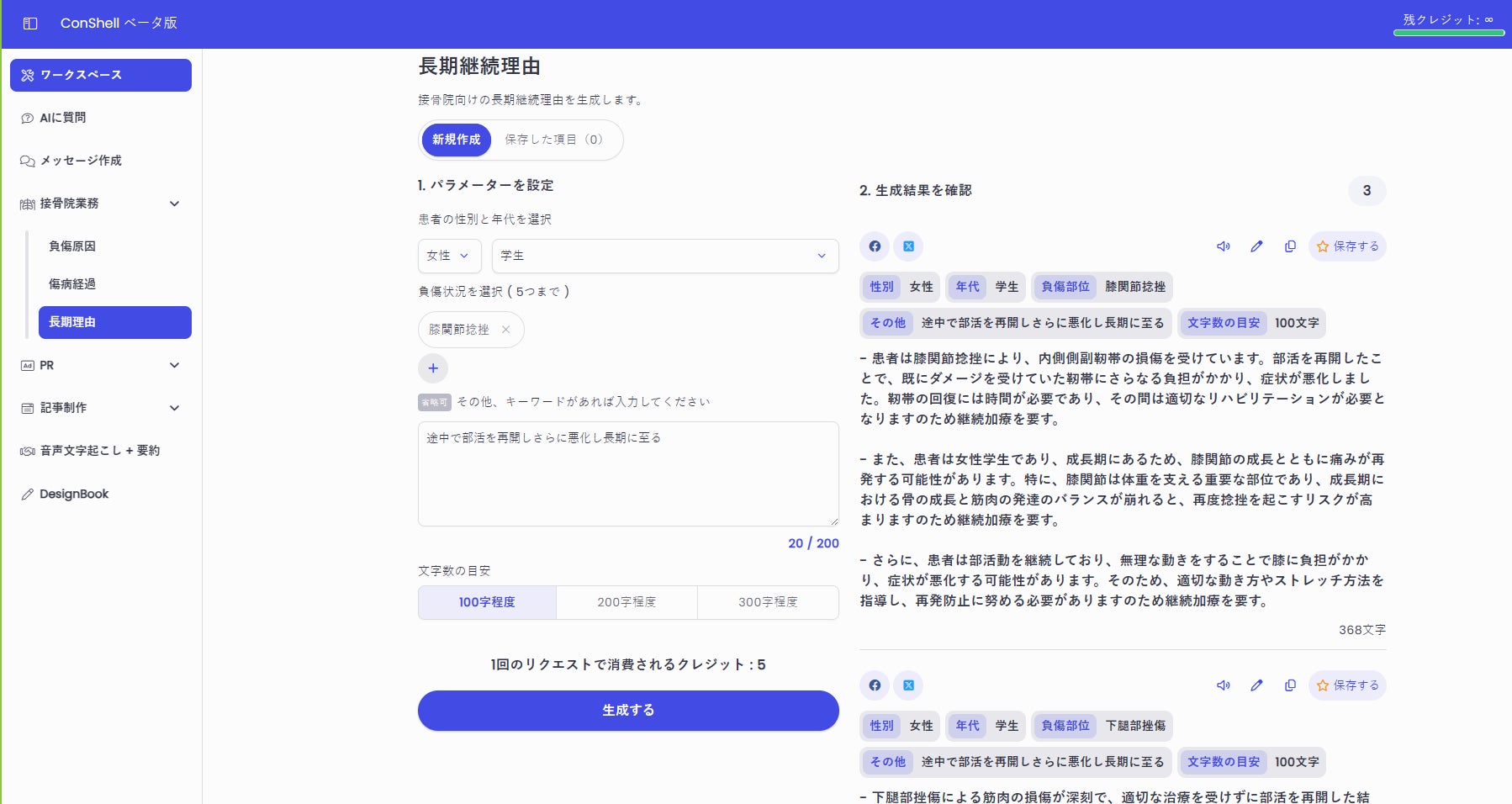 『ConShell』とは、接骨院・整骨院向けのAIを利用した文章作成支援ツールです。