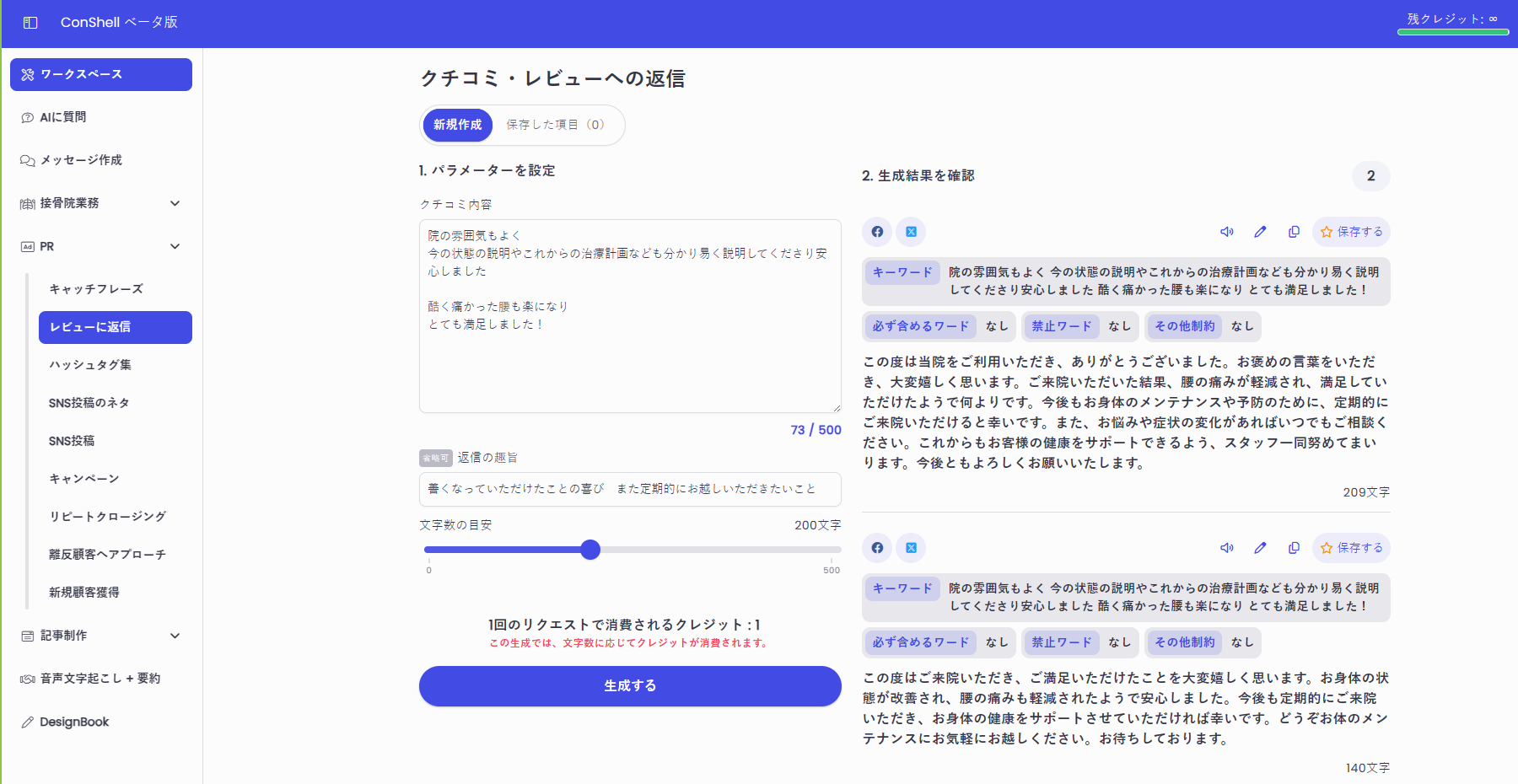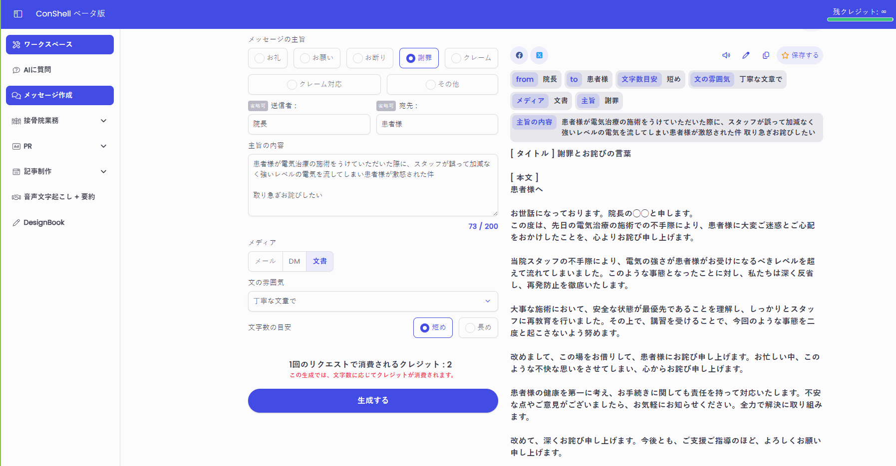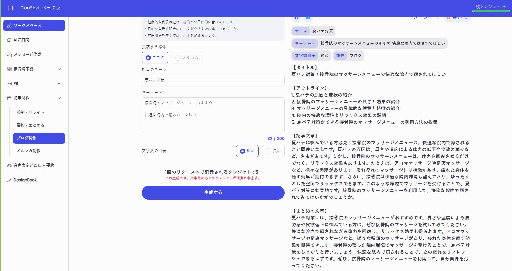 『ConShell』とは、接骨院・整骨院向けのAIを利用した文章作成支援ツールです。